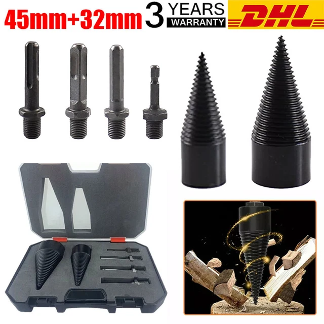 Holz machen war noch nie so einfach! Mit diesem Brennholz-Bohrer-Set spaltest du Holz im Handumdrehen. Der 50mm Kegel aus Kohlenstoffstahl beißt sich tief ins Holz und teilt es effizient. Im Set: Bohrer, Sechskantschaft, runder und quadratischer Griff - für verschiedene Bohrmaschinen geeignet. Einfach montieren, ins Holz drehen und schon spaltet es sich. Perfekt für Eiche, Hickory, Walnuss und andere Hölzer. Ideal für Haushalt, Camping oder Bauernhof. Wichtig: Bei hartnäckigem Holz einfach Rückwärtsgang nutzen. Nie wieder mühsames Hacken - mit diesem Set machst du schnell und sicher dein Brennholz!