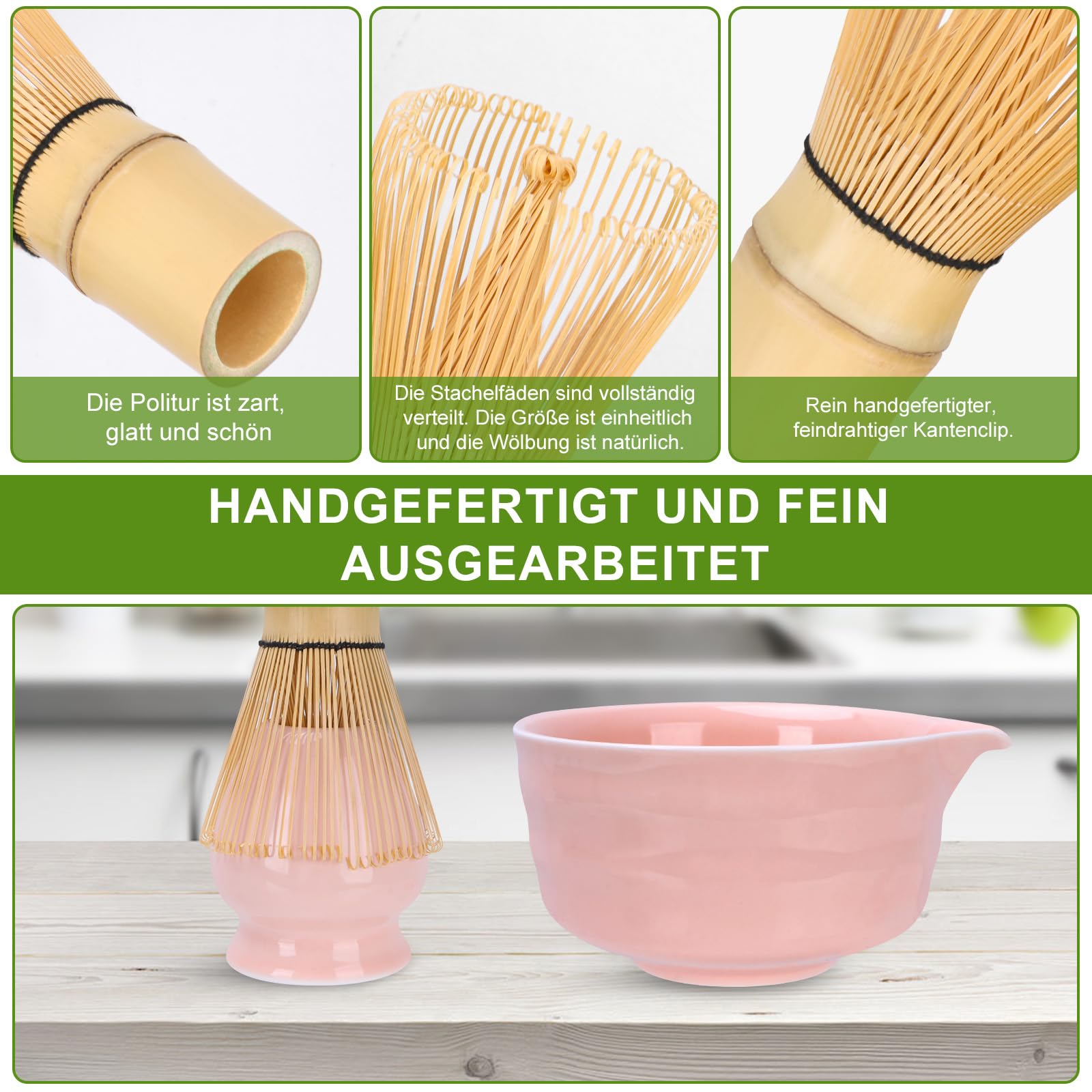 Wow, dieses rosa Matcha-Set von LUIIKEN ist einfach traumhaft schön! Das 5-teilige Set hat alles, was du für die perfekte Matcha-Zeremonie brauchst: Keramik-Schale mit praktischem Ausgießer (500ml), stylischen Ständer, traditionellen Rührer mit 86 feinen Zähnen für cremigen Schaum, Matcha-Löffel und Teelöffel. Alles aus hochwertiger, blei- und kadmiumfreier Keramik bei hohen Temperaturen gebrannt. Die zarte rosa Farbe erinnert an Kirschblüten und macht jede Tee-Pause zu nem kleinen Kunst-Erlebnis. Einfach zu reinigen, spülmaschinenfest und super stabil. Ob für dich selbst oder als Geschenk - damit machst du garantiert jeden Matcha-Fan glücklich. Bringt richtig Poesie in deine Tee-Momente!