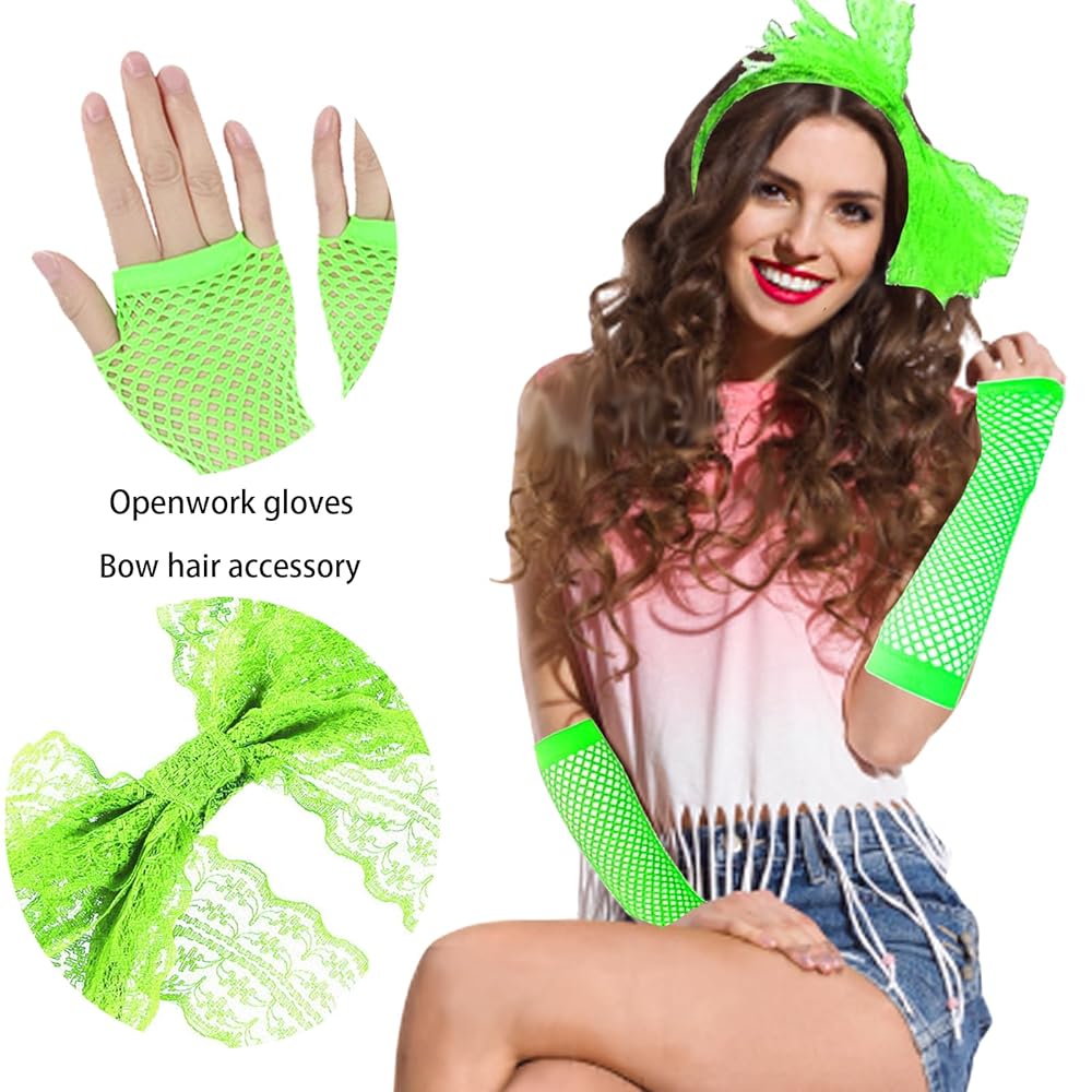 Timewarp back to the 80s! Dieses komplett Outfit-Set von YOUYIKE lässt die Ära der Neonfarben und ausgefallenen Styles wieder aufleben. Enthalten sind ein cooles T-Shirt, ein fluffiges Tutu, eine auffällige Halskette, stylische Netzhandschuhe, eine praktische Gürteltasche, Ohrringe und ein trendiges Stirnband. Perfekt für die nächste 80er Party, Karneval oder einfach nur für alle, die den Vintage-Look lieben. Einfach anziehen und du bist der Star jeder Party! Die Kombination aus verschiedenen Materialien und Stilen sorgt für einen authentischen 80s Look, der garantiert Aufmerksamkeit erregt. Mach dich bereit für eine Reise in die bunteste Dekade ever!