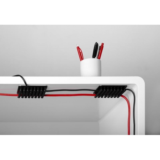 Endlich Ordnung im Kabelchaos! Dieses Cablox Set mit 10 Organisern bringt System in deine Kabel. Einfach die selbstklebende Rückseite unter dem Schreibtisch oder hinter der Anlage befestigen und die Kabel zwischen die Kunststoff-Noppen stecken. Das schlanke Design (30x100mm) passt auch an enge Stellen. Mit 2 Reihen à 8 Ösen organisierst du dünne Handy-Kabel genauso wie dicke Monitor- oder Druckerkabel. Der 3M Kleber hält sicher, aber rückstandsfrei lösbar. Aus flexiblem Kunststoff, der sich jeder Oberfläche anpasst. Perfekt für Home Office, Entertainment Center oder Werkstatt - wo immer Kabel Chaos verursachen! Einfach Kabel reinstecken, bei Bedarf wieder rausziehen. So einfach kann Ordnung sein!