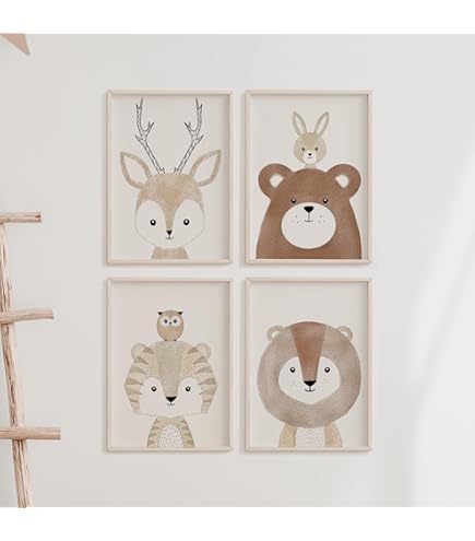 Verwandle das Kinderzimmer in eine bezaubernde Waldlandschaft! Dieses Set enthält 4 A4-Poster (30x21 cm) mit süßen Aquarell-Motiven von Tieren, Regenbögen und Wolken. Gedruckt auf hochwertiger Leinwand mit Micro-Spray-Technologie – umweltfreundlich, geruchlos und farbecht. Die zarten Beige- und Rosatöne schaffen eine warme, kindgerechte Atmosphäre. Perfekt fürs Babyzimmer, Kindergarten oder Spielzimmer. Einfach an die Wand pinnten und staunen, wie gemütlich es wird!