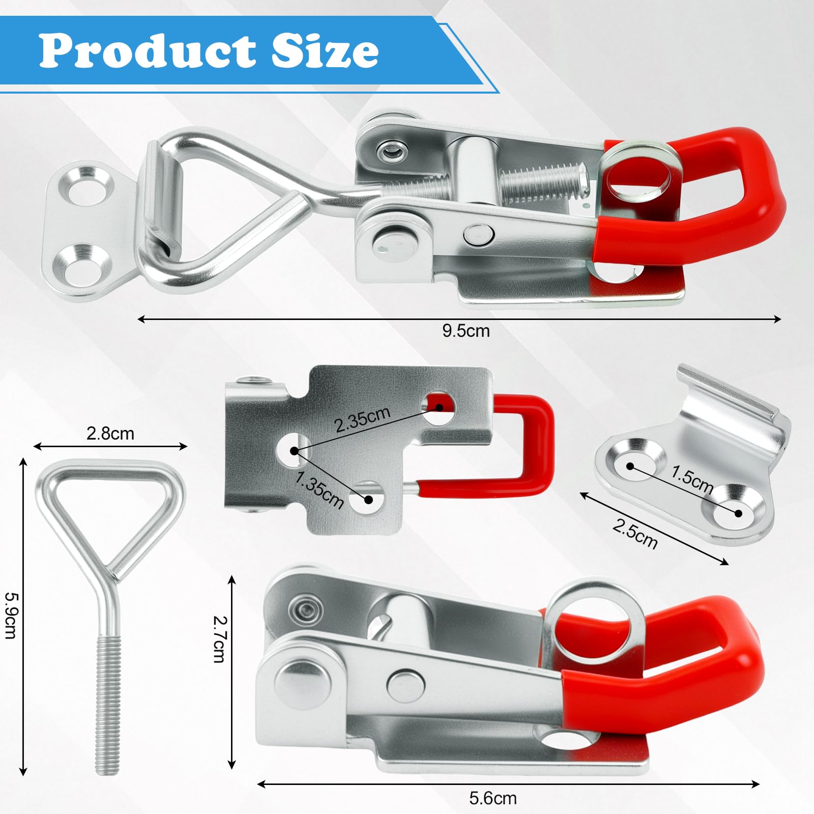 Endlich Ordnung und Sicherheit für deine Kisten, Schränke und Boxen! Diese robusten Spannverschlüsse von YOYEAH halten was sie versprechen. 💪🔒\n\nTechnische Power-Daten:\n• 6 Stück im Set - genug für mehrere Projekte\n• Tragkraft bis 100 kg - wirklich stabil!\n• Aus verzinktem Eisen - rostfrei und langlebig\n• Verstellbarer Abstand - passt sich jeder Situation an\n• Mit Schloss-Loch - für extra Sicherheit\n\nEinfache Montage:\nDie Verschlüsse werden mit Standard M4 Schrauben befestigt (nicht im Lieferumfang). Kein kompliziertes Werkzeug nötig - einfach anbringen und die verstellbare Spannung einstellen.\n\nEinsatzgebiete ohne Ende:\n🏠 Werkstatt: Werkzeugkisten sicher verschließen\n🚗 Garage: Autoteile-Boxen vor neugierigen Blicken schützen\n🏢 Büro: Aktenschränke zusätzlich sichern\n🎒 Reise: Koffer und Transportboxen verschnallen\n🏡 Garten: Gartengeräte-Boxen wetterfest machen\n\nWarum diese Verschlüsse so praktisch sind:\nDas verstellbare Design ermöglicht perfekte Anpassung an verschiedene Kistengrößen. Ob kleine Schmuckkisten oder große Transportboxen - hier findet jeder den richtigen Sitz.\n\nBesondere Features:\n✅ Korrosionsbeständig - für Innen- und Außenbereich\n✅ Einfache Handhabung - kinderleicht zu bedienen\n✅ Vielseitig einsetzbar - für fast alle Arten von Behältern\n✅ Robuste Verarbeitung - hält auch rauem Einsatz stand\n✅ Optional mit Vorhängeschloss - für maximale Sicherheit\n\nTipp für die Montage:\nVerwende gute Qualitätsschrauben und bohre vor, dann sitzen die Verschlüsse bombenfest!\n\nOb du wertvolle Werkzeuge schützen willst, wichtige Dokumente sichern möchtest oder einfach nur Ordnung in deine Aufbewahrung bringen willst - mit diesen Spannverschlüssen hast du alles im Griff.\n\nAlso: Schluss mit wackeligen Deckeln und unsicheren Verschlüssen! Hol dir dieses Set und mache deine Aufbewahrung professionell und sicher. Deine Sachen werden es dir danken!