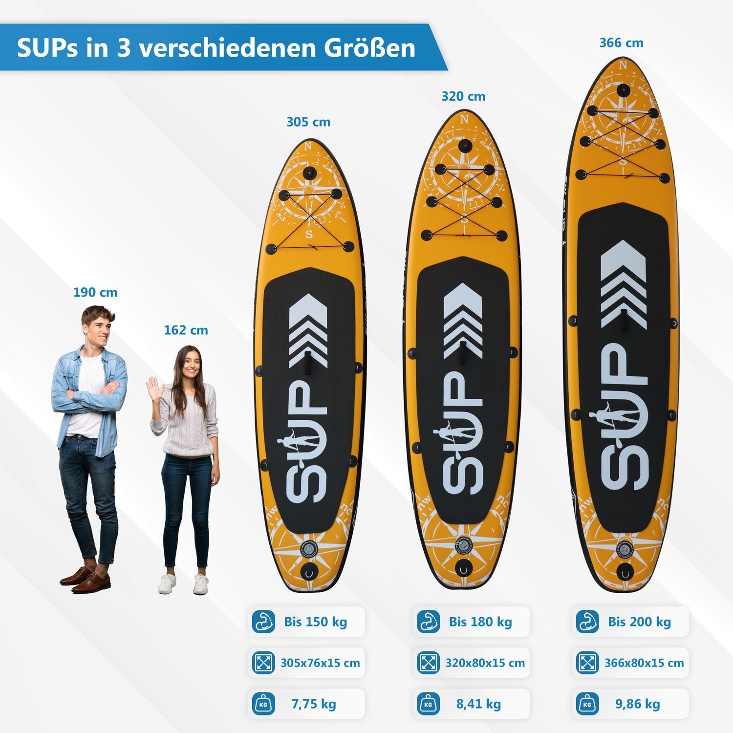 Bock auf Action auf dem Wasser? Mit diesem kompletten SUP-Set von Soke geht's sofort los! Das Board ist super stabil und sicher - perfekt für Einsteiger, aber auch Fortgeschrittene haben ihren Spaß. Es trägt bis zu 85 kg und hat eine rutschfeste EVA-Oberfläche, damit du sicher stehst. Im Set ist wirklich alles dabei, was du brauchst: Board, Paddel (verstellbar von 162-210 cm), Doppelhubpumpe mit Manometer, Leash, Finne, Sitz, Reparaturset und ein praktischer Rucksack. Das Board ist mit der Drop-Stitch Light Technologie gemacht - das bedeutet: extrem stabil, aber trotzdem leicht. Mit nur 10,6 kg Gewicht nimmst du es einfach im Rucksack mit zum See, Meer oder Fluss. Das Netz auf dem Board gibt dir extra Stauraum für dein Zeug. Einfach aufblasen und lospaddeln - mehr Freiheit geht nicht!