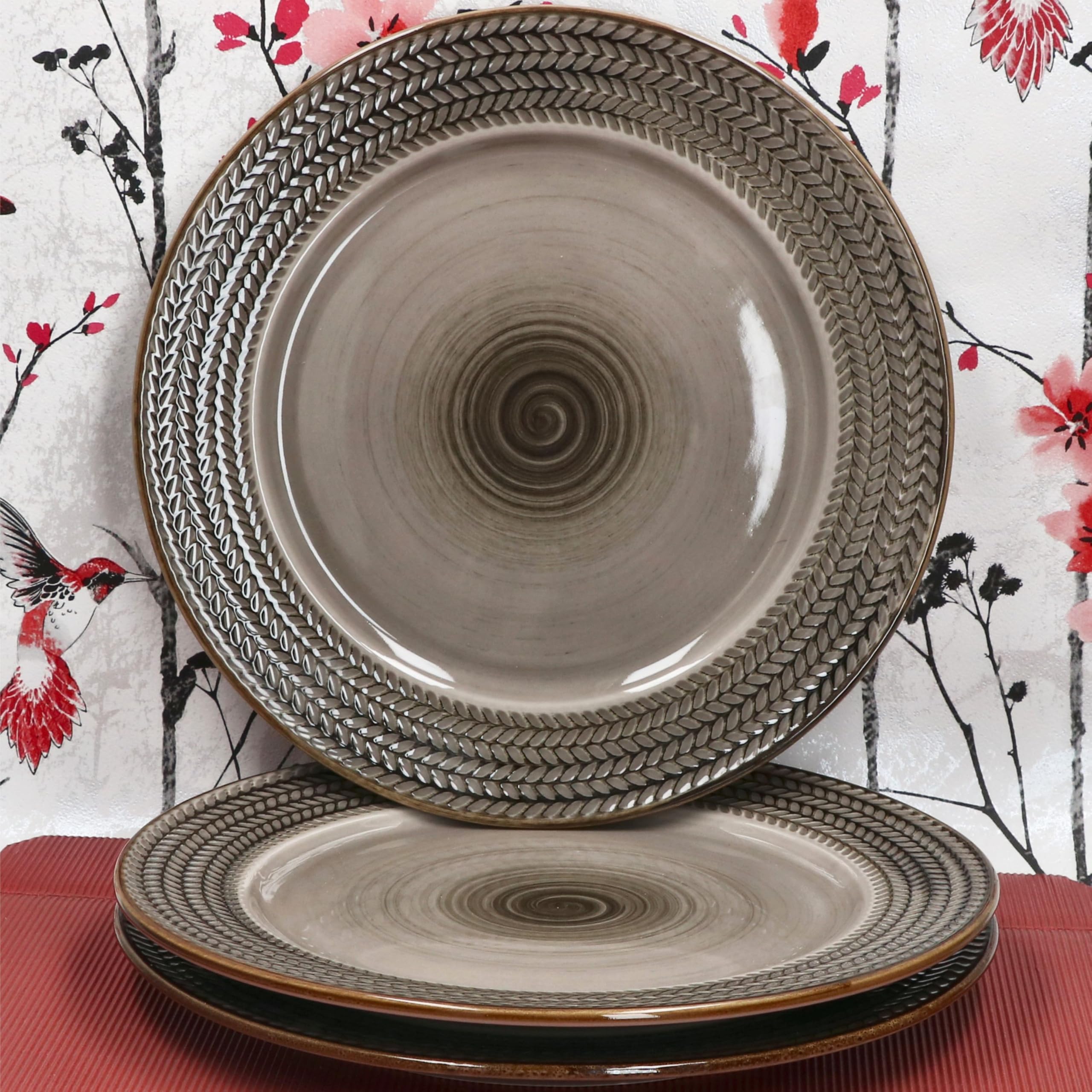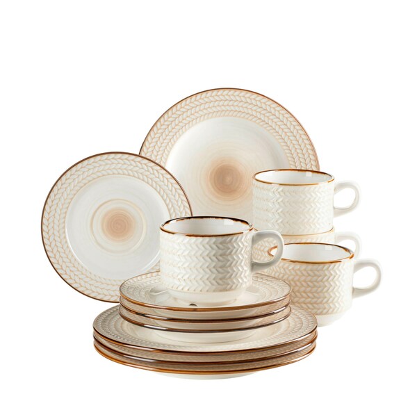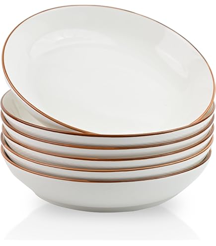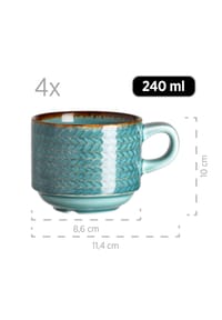 Serviere deine Köstlichkeiten mit Stil! Dieses 6er-Set Kuchenteller im Retro-Design macht jede Mahlzeit zum kleinen Kunstwerk. Jeder Teller ist ein Unikat - mit handgemaltem Spiraldekor und erhabenem Reliefmuster am Rand. Aus robustem Durable-Porzellan gefertigt, halten die Teller auch bei täglicher Nutzung problemlos stand. Mit 20,5 cm Durchmesser perfekt für Kuchen, Desserts, Salat, Fingerfood oder Frühstücksbrötchen. Die braune Grundfarbe mit ockerfarbener Umrandung passt zu nahezu jedem Einrichtungsstil. Besonders praktisch: spülmaschinen- und mikrowellengeeignet! Die Teller sind stapelbar und sparen so Platz im Schrank. Ob für den gemütlichen Kaffeenachmittag, das Sonntagsfrühstück oder die nächste Party - diese Teller sorgen für bewundernde Blicke. Der Spiegel mit 12 cm Durchmesser bietet genug Platz für ansprechende Arrangements. Einfach auspacken, belegen und genießen - guter Geschmack lässt sich eben sehen!