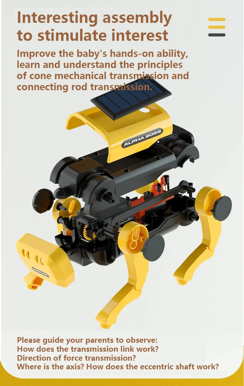 Wie cool ist das denn? Ein Roboter-Hund, der mit Solarenergie läuft! Dieses Set begeistert kleine und große Technikfans gleichermaßen. Der mechanische Hund aus ABS-Material ist 7x13,5x8cm groß und bewegt sich super lebendig. Das Beste: Er hat austauschbare Kopfbilder - da wird's nie langweilig! Der Roboter fördert das Umweltbewusstsein, denn er läuft mit Solar- oder Batteriebetrieb. So lernen Kinder spielerisch etwas über erneuerbare Energien. Aber das ist noch nicht alles: Das Spielzeug schult praktische Fähigkeiten, räumliches Denken und Logik. Die polierten Oberflächen sind angenehm glatt und sicher für Kinderhände. Perfekt für junge Innovatoren, die erste Erfahrungen mit Robotik sammeln wollen. Und das gemeinsame Bauen fördert die Eltern-Kind-Beziehung - ein Spielzeug mit echtem Mehrwert!