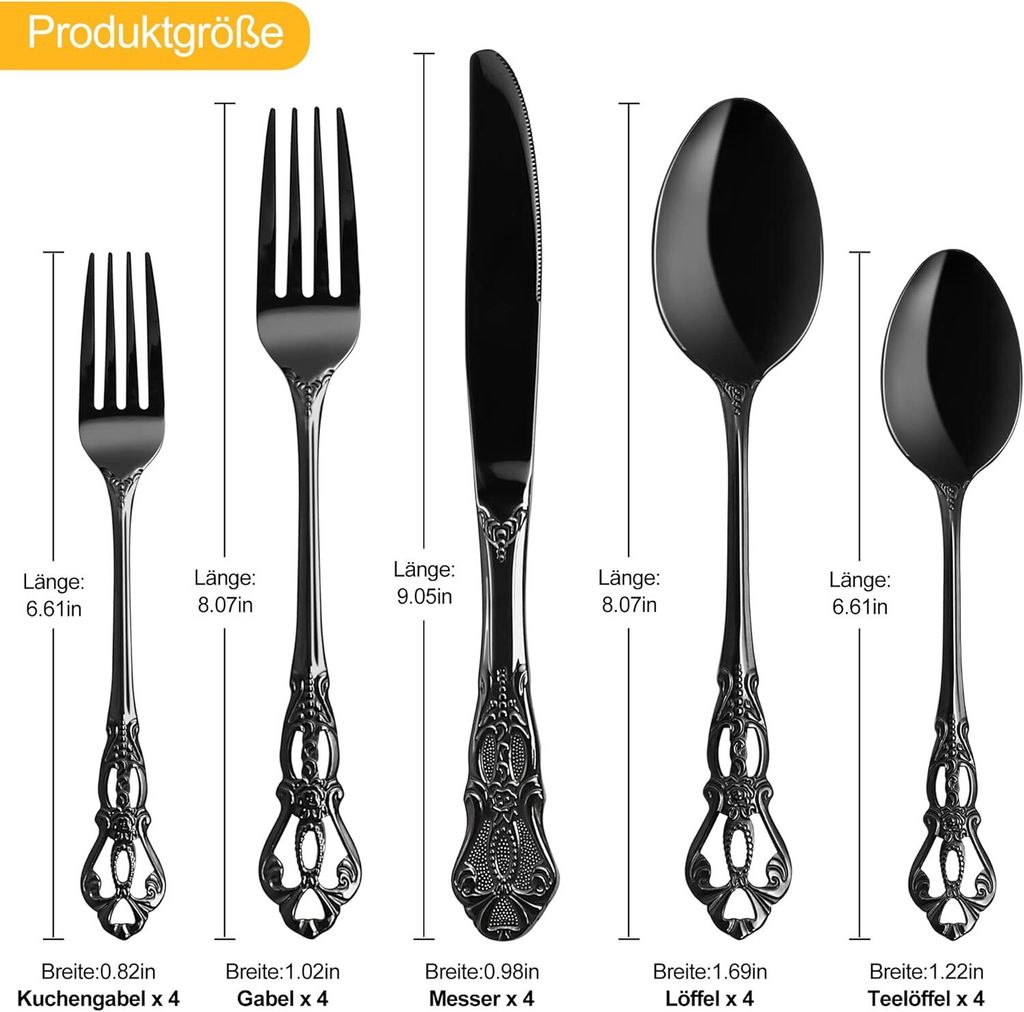 Richtig stylisches Besteck für deinen Tisch! Dieses GRÄWE Set in mattem Schwarz sieht einfach edel aus. Für 2 Personen komplett mit allem, was man braucht: Messer, Gabeln, Löffel - sogar Kuchengabeln sind dabei. Aus robustem Edelstahl mit Titanbeschichtung, also nichts mit abblättern oder verkratzen. Spülmaschinengeeignet - super praktisch für den Alltag. Macht sich gut bei festlichen Abendessen, aber auch beim täglichen Essen. Das Design ist modern und zeitlos zugleich. Wenn du mal mehr Gäste hast, kannst du das Set easy erweitern. Hol es dir und upgrade deine Tischkultur!