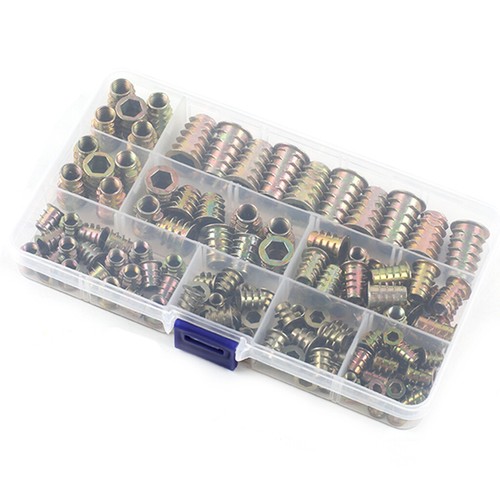 Die Lösung für stabile Möbelverbindungen! Dieses umfangreiche Set mit 230 Einschraubmuttern in 11 verschiedenen Größen ist ein Muss für jede Werkstatt. Von M4 bis M10 ist alles dabei - perfekt für Möbelmontage, Schubladengriffe und Holzarbeiten. Hergestellt aus verzinktem Kohlenstoffstahl, sind diese Muttern extrem robust, korrosionsbeständig und langlebig. Das selbstschneidende Außengewinde erleichtert die Installation in Holz und Holzwerkstoffen. Einfach ein passendes Loch vorbohren und mit einem Innensechskantschlüssel eindrehen - schon hast du ein stabiles Gewinde! Die praktische Aufbewahrungsbox mit transparentem Deckel hilft dir, Ordnung zu halten und immer die richtige Größe griffbereit zu haben. Ideal für Möbel, Kleiderschränke, Betten, Stühle und vieles mehr. Mit diesem Set bist du für alle Reparatur- und Montagearbeiten bestens ausgerüstet. Einfach die passende Größe wählen und loslegen!