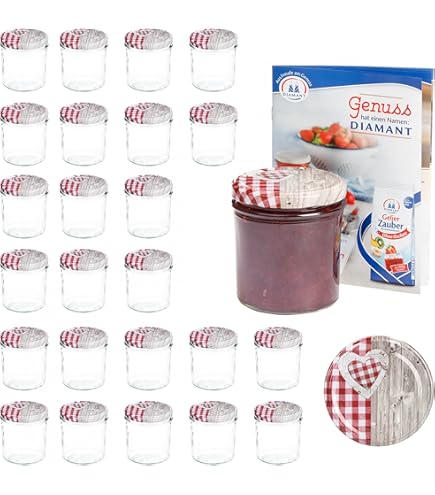 Perfekt für deine Einmachsaison! Dieses 75er Set von MamboCat bringt Charme in deine Küche. Die 212ml Gläser mit süßen Holz-Herz Deckeln in Rot-Beeren-Design sind ideal für Marmelade, Gelee, Mus, Kräuter, Suppen und Babynahrung. Aus geschmacksneutralem Glas, spülmaschinengeeignet und langlebig. Die Twist-Off Deckel (TO 63) gewährleisten luftdichten Verschluss für perfektes Einkochen. Maße: 8,5cm hoch, 7,5cm Durchmesser. Die Deckel bitte per Hand reinigen und nach Gebrauch austauschen. Umweltfreundlich und wiederverwendbar - deine Vorräte sehen einfach bezaubernd aus!