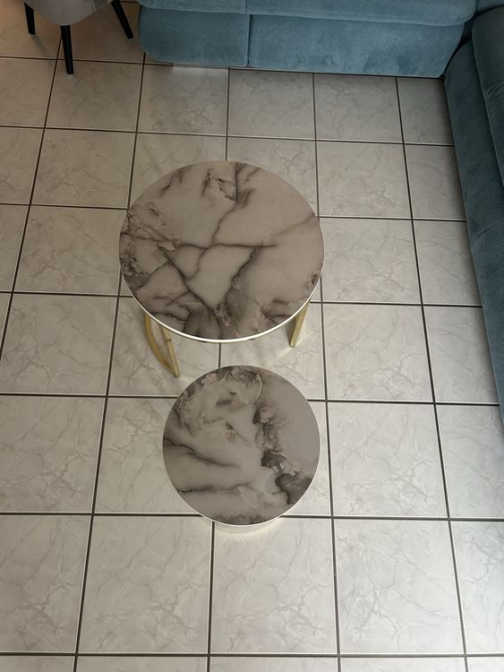 Modernes Duo für dein Wohnzimmer! Dieses 2er-Set Beistelltische in Grau-Marmor-Optik mit schwarzem Metallgestell bringt stylisches Flair in deine vier Wände. Die große Platte misst 80x80x45cm, perfekt als Couchtisch, die kleinere als Beistelltisch. Aus hochdichtem Sinterstein - kratzfest, hitzebeständig und pflegeleicht! Einfach mit einem Tuch abwischen, und Flecken sind weg. Das stabile Metallgestell trägt problemlos Bücher, Getränke oder Dekoration. Die abgerundeten Ecken sind sicher für Kinder und Senioren. Du kannst die Tische zusammenstellen, getrennt nutzen oder platzsparend stapeln - total flexibel! Ob im Wohnzimmer, Schlafzimmer oder Home-Office - dieses Set macht überall eine gute Figur und ist ein echter Hingucker!