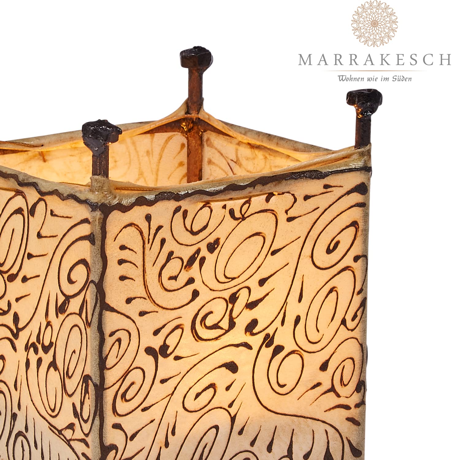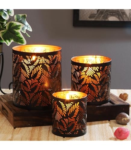 Wow, dieses 3er Set orientalischer Windlichter bringt sofort Urlaubsflair in dein Zuhause! Die metallenen Laternen haben außen eine schwarze Farbe und innen glänzt es in warmem Kupfer - einfach magisch wenn das Kerzenlicht durch die filigranen Muster scheint. Du bekommst drei verschiedene Größen: 14cm, 11cm und 9cm hoch. Perfekt für Wohnzimmer, Garten oder als Tischdekoration. Das Metall ist robust und die Verarbeitung ist echt hochwertig. Egal ob für romantische Abende, Feiern oder einfach als Deko-Highlight - diese Windlichter machen immer was her. Einfach Teelichter rein, anzünden und den orientalischen Zauber genießen!