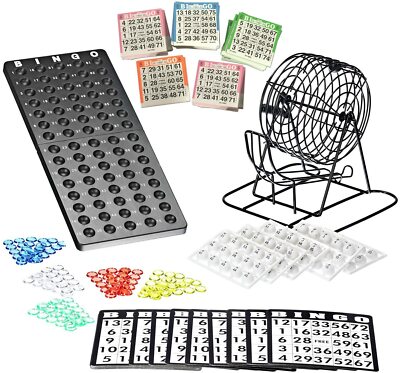 Bingo! Dieses komplette Set bringt Spaß für die ganze Familie oder gemütliche Spieleabende. Die robuste Metall-Bingotrommel (20cm) ist schwarz lackiert und sieht richtig klasse aus. Mit dabei: 75 weiße Kugeln mit schwarzen Zahlen, 150 bunte Kennzeichnungschips, ein praktisches Ergebnisbrett für die gezogenen Kugeln und ein Block mit 500 Bingokarten - jeder Zettel einzeln entnehmbar. Für 2 oder mehr Spieler geeignet, also perfekt für Partys, Familienfeiern oder Vereinsveranstaltungen. Alles neu in Originalverpackung. Achtung: Enthält Kleinteile, nicht für Kinder unter 3 Jahren geeignet. Macht jeden Abend zum besonderen Erlebnis - wer ruft zuerst 'Bingo'?