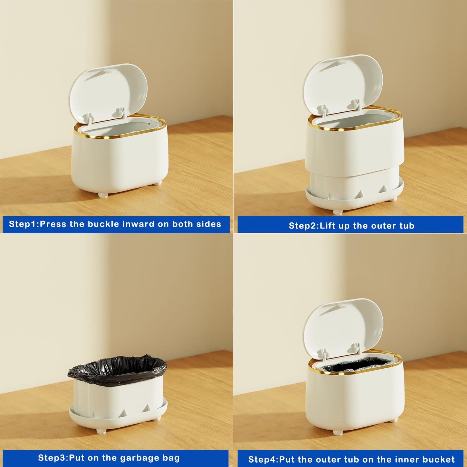 Wie praktisch ist das denn? Dieses 3er Set Mini-Mülleimer von YOUEON bringt Ordnung in dein Zuhause! Die kleinen Abfalleimer sind perfekt für den Schreibtisch, Couchtisch oder das Badezimmer. Mit nur 22,1x10,9x13cm nehmen sie kaum Platz weg, aber sind groß genug für die täglichen Kleinigkeiten. Der luftdichte Deckel verhindert unangenehme Gerüche und hält Fruchtfliegen fern - super hygienisch! Die integrierte Schnalle hält den Müllbeutel sicher fest, damit nichts verrutscht. Einfach mit dem Finger aufklappen, Müll rein, zuklappen - simpler geht's nicht! Und wenn's mal dreckig wird: Einfach mit Wasser ausspülen oder abwischen. Aus robustem Kunststoff, der nicht so leicht kaputt geht. In dezentem Weiß passen sie überall hin und sehen dabei noch stylisch aus. Endlich kein herumliegender Kleinkram mehr!