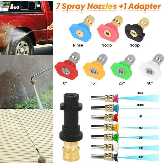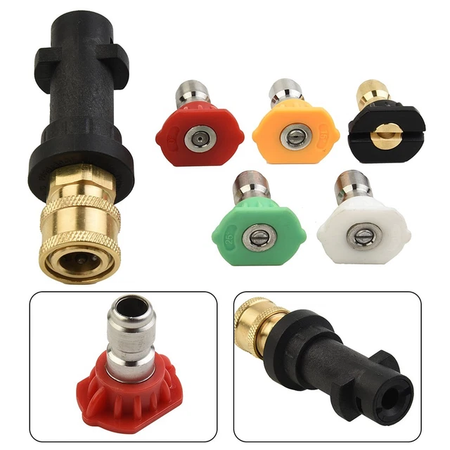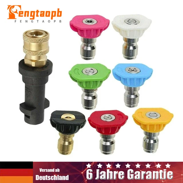Mega praktisch dieses Adapter-Set für deinen Kärcher! Endlich schnell zwischen verschiedenen Düsen wechseln ohne lästiges Rumgefummel. Perfekt kompatibel mit K2, K3, K4, K5 und K6 Modellen - einfach aufstecken und loslegen. Das Set enthält gleich 5 verschiedene Sprühdüsen für alle Reinigungsaufgaben. Ob Auto waschen, Terrasse säubern oder Fenster putzen - für jede Aufgabe die richtige Düse. Aus robustem Messing gefertigt, hält das Teil locker über 3000 PSI aus. Die 1/4 Zoll Messing-Fittings passen perfekt und sind absolut dicht. Super durchdacht: Kompaktes Design zur platzsparenden Aufbewahrung - alles griffbereit wenn du es brauchst. Macht die Reinigung so viel effizienter und spaßiger! Einfach mal ausprobieren - du wirst dich fragen, wie du früher ohne dieses Set klar gekommen bist. Qualität die man spürt und sieht!