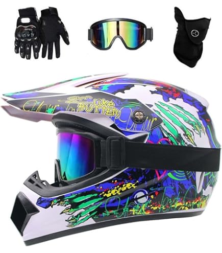 Safety first! Dieses Motocross-Helm-Set hat alles, was junge Fahrer brauchen. Der Helm ist D.O.T./ECE-zertifiziert und aus robustem ABS-Kunststoff mit EPS-Innenfutter. In den Größen S bis XL erhältlich - vorher Kopfumfang messen! Im Set dabei: Schutzbrille mit klaren Gläsern, atmungsaktive Handschuhe mit Klettverschluss und ne coole Maske. Perfekt für Motocross, Mountainbike, ATV, BMX und andere Offroad-Aktivitäten. Das Innenfutter ist waschbar - super praktisch. Mit guter Belüftung bleibt der Kopf auch bei Anstrengung cool. Ein komplettes Set für sicheren Spaß - ideal als Geschenk für junge Motorsport-Fans!