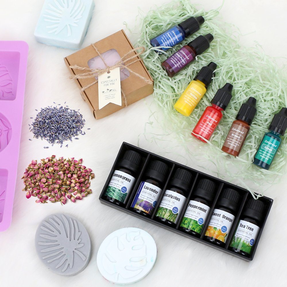 Entdecke die kreative Welt des Seifenbastelns mit diesem komplett Set! Enthält hochwertige Glycerin-Seifenbasis, die sich leicht schmelzen und verarbeiten lässt. Dazu gibt es drei wunderbare Duftöle: Lavendel, Rose und Osmanthus - für herrlich duftende Kreationen. Mit verschiedenen Farbessenzen und getrockneten Blüten zum Verzieren. Alles was du brauchst, um deine eigenen individuellen Seifen herzustellen! Perfekt für entspannende Bastelnachmittage, Kindergeburtstage oder als kreatives Hobby. Die Seifen sind hautschonend und pflegend, ideal für sensible Haut. Mach dir selbst eine Freude oder verschenke das Set an kreative Freunde - das Basteln mit Naturmaterialien macht einfach Spaß! Einfach die Seifenbasis schmelzen, Duft und Farbe hinzufügen, in die Form gießen und trocknen lassen. Schon hast du deine eigene, persönliche Seife! Tolle Geschenkidee für DIY-Fans, die etwas Besonderes suchen. Tauche ein in die Welt der natürlichen Pflegeprodukte!