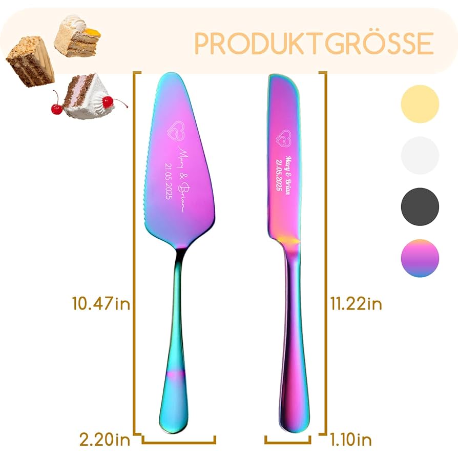 Wow, was für ein edles Geschenk! Dieses personalisierte Tortenheber-Set ist einfach perfekt für besondere Anlässe. Das 2-teilige Set besteht aus einem Tortenmesser und einem Tortenheber - beide kannst du mit Namen, Datum oder einer persönlichen Botschaft gravieren lassen. Erhältlich in silberner oder goldener Optik, je nach Geschmack. Die hochwertige Geschenkbox mit bedrucktem Deckel macht das Ganze noch specialer. Ob zur Hochzeit, zum Jubiläum, Geburtstag oder zur Taufe - dieses Set berührt einfach jedes Herz. Stell dir vor, wie das Brautpaar beim Anschneiden der Torte diese wunderschönen Stücke in Händen hält. Ein Geschenk, das in Erinnerung bleibt!