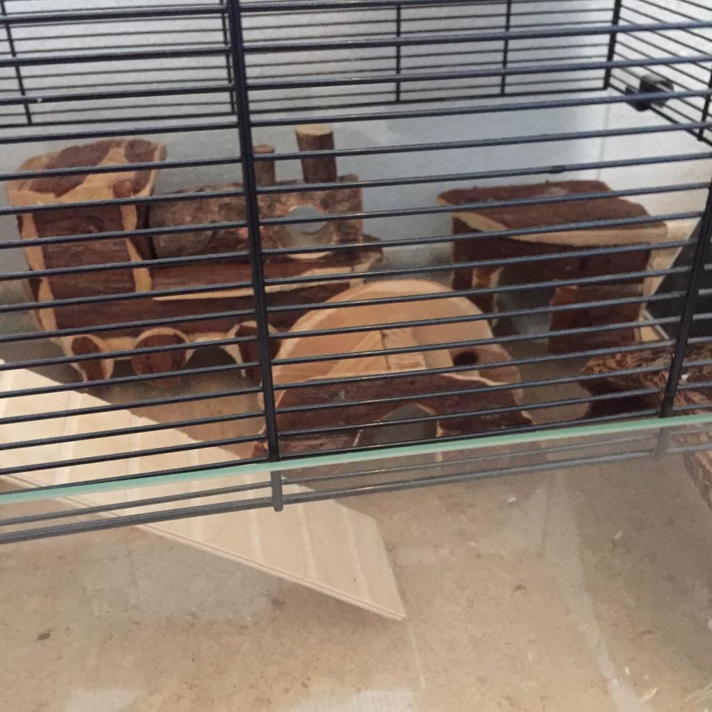 Verwandle den Käfig deines Hamsters in ein kleines Paradies! Dieses niedliche Naturholz-Set besteht komplett aus unbehandeltem Kiefern- und Pappelholz und ist damit absolut sicher für dein Tier. Im Set enthalten sind ein massives Laufrad, eine süße Holzbrücke, ein gemütliches Häuschen, ein Tischchen, ein Zaun und eine Treppe - also alles, was das Hamsterherz begehrt. Alle Teile sind sorgfältig handgeschliffen und haben keine scharfen Kanten, an denen sich dein Liebling verletzen könnte. Perfekt für Hamster, Meerschweinchen und andere kleine Nager. Die Einrichtung passt ideal in Käfige ab 60x30x30 cm und schafft viele Kletter- und Versteckmöglichkeiten. Dein Tier wird begeistert sein! Einfach aufbauen - die Teile sind schon fertig montiert - und schon kann der Spielspaß beginnen. Übrigens: Das Set kommt mit natürlichem Sägemehl (1000g) für noch mehr Komfort.