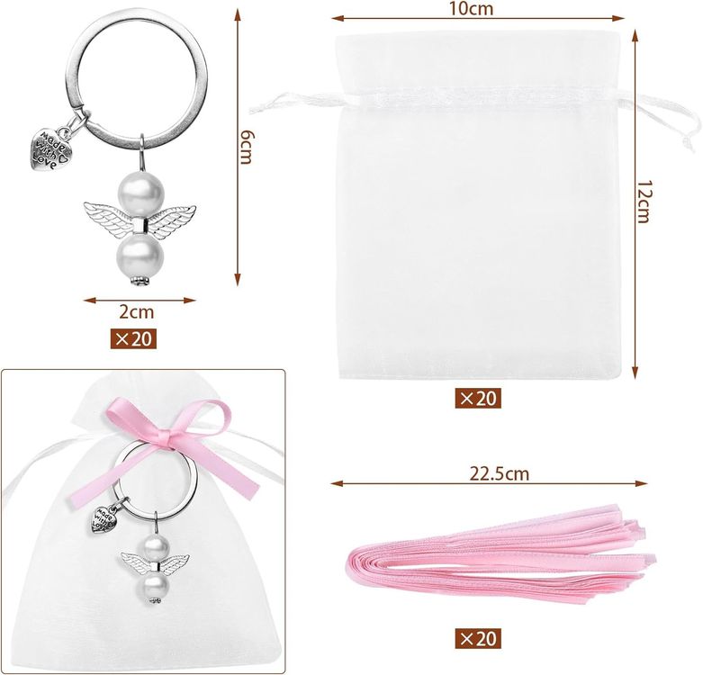 Wow, dieses süße Schutzengel-Set ist einfach perfekt für alle möglichen Anlässe! 12 bezaubernde Anhänger mit Engel-Motiv, die echt als Glücksbringer taugen. Jeder Anhänger ist ein Unikat mit Perlen, Herzchen und filigranen Flügeln - einfach niedlich! Dazu gibt's 12 weiße Organza-Beutelchen, damit du die Geschenke gleich perfekt verpacken kannst.