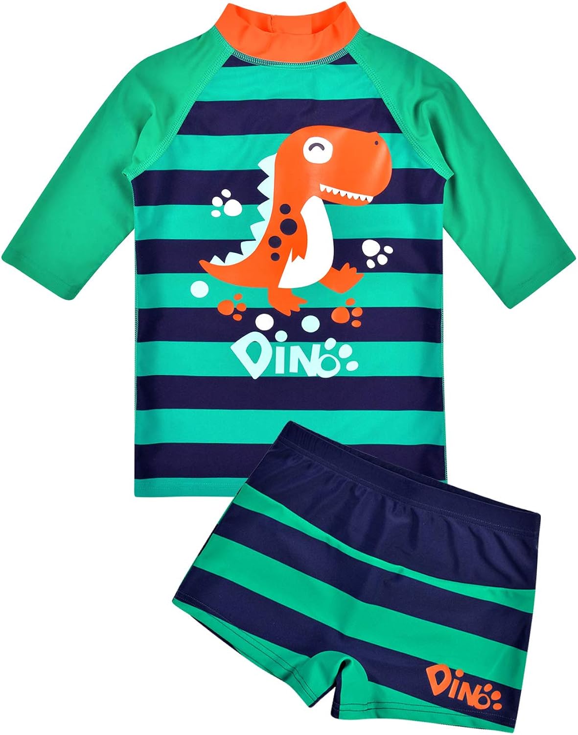 Perfekter Sonnenschutz für die Kleinen am Strand und im Schwimmbad! Dieses süße Bade-Set besteht aus Langarm-Shirt und Badeshorts mit UPF 50+ Schutz. Blockiert bis zu 98% der schädlichen UVA/UVB-Strahlen - ideal für empfindliche Kinderhaut. Aus 82% Polyester und 18% Spandex, super atmungsaktiv und schnelltrocknend. Mit niedlichem Motiv und Rundhalsausschnitt für maximalen Tragekomfort. Perfekt für Surf-Urlaub, Strandtage oder Schwimmbad-Besuche. Die Kinder können unbeschwert planschen ohne Sonnenbrand. Einfach an- und ausziehen, praktisch auch für zwischendurch. In verschiedenen Größen erhältlich - bitte Größentabelle beachten! Macht das Baden sicherer und sorgloser. Ein Must-Have für jeden Sommerurlaub mit Kindern!