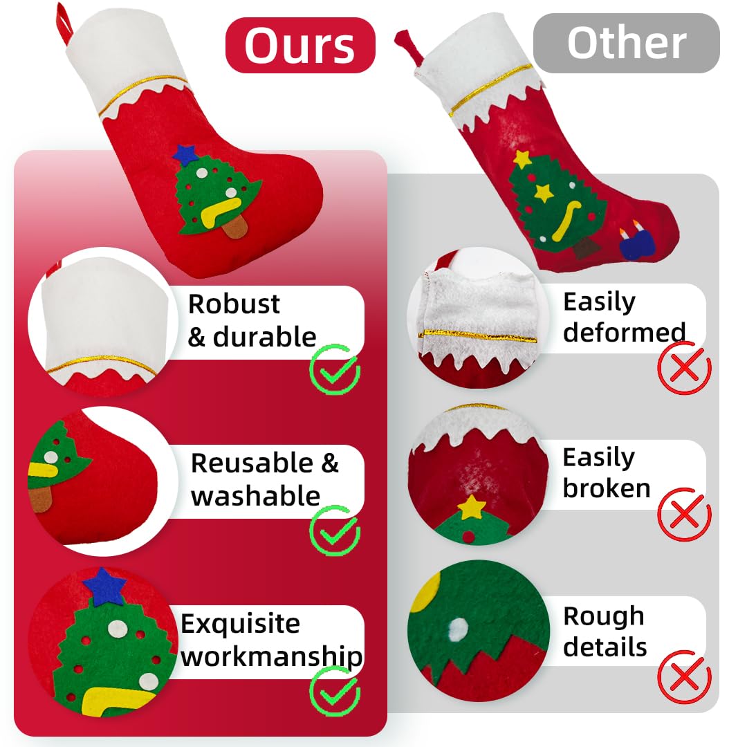Oh, wie süß! Dieses 4er-Set Weihnachtsstrümpfe bringt richtig Festtagsstimmung in dein Zuhause. Jeder Strumpf zeigt einen anderen weihnachtlichen Charakter: Weihnachtsmann, Schneemann und Weihnachtsbaum - einfach niedlich! Hergestellt aus weichem Vliesstoff, der sich angenehm anfühlt und atmungsaktiv ist. Mit der stabilen Aufhänge-Schlaufe kannst du sie ganz easy am Kamin, an der Tür oder überall dort befestigen, wo sie gut aussehen. Die Größe ist super großzügig: etwa 38 cm hoch und 16 cm breit - da passt eine Menge an Süßigkeiten und kleinen Geschenken rein! Umweltfreundlich und jahrelang wiederverwendbar, also eine langlebige Investition für viele Weihnachtsfeste. Perfekt um die Vorfreude aufs Christkind zu steigern oder als hübsche Deko für deine Weihnachtsfeier. Einfach festlich und praktisch zugleich - damit wird die Bescherung zum echten Highlight!