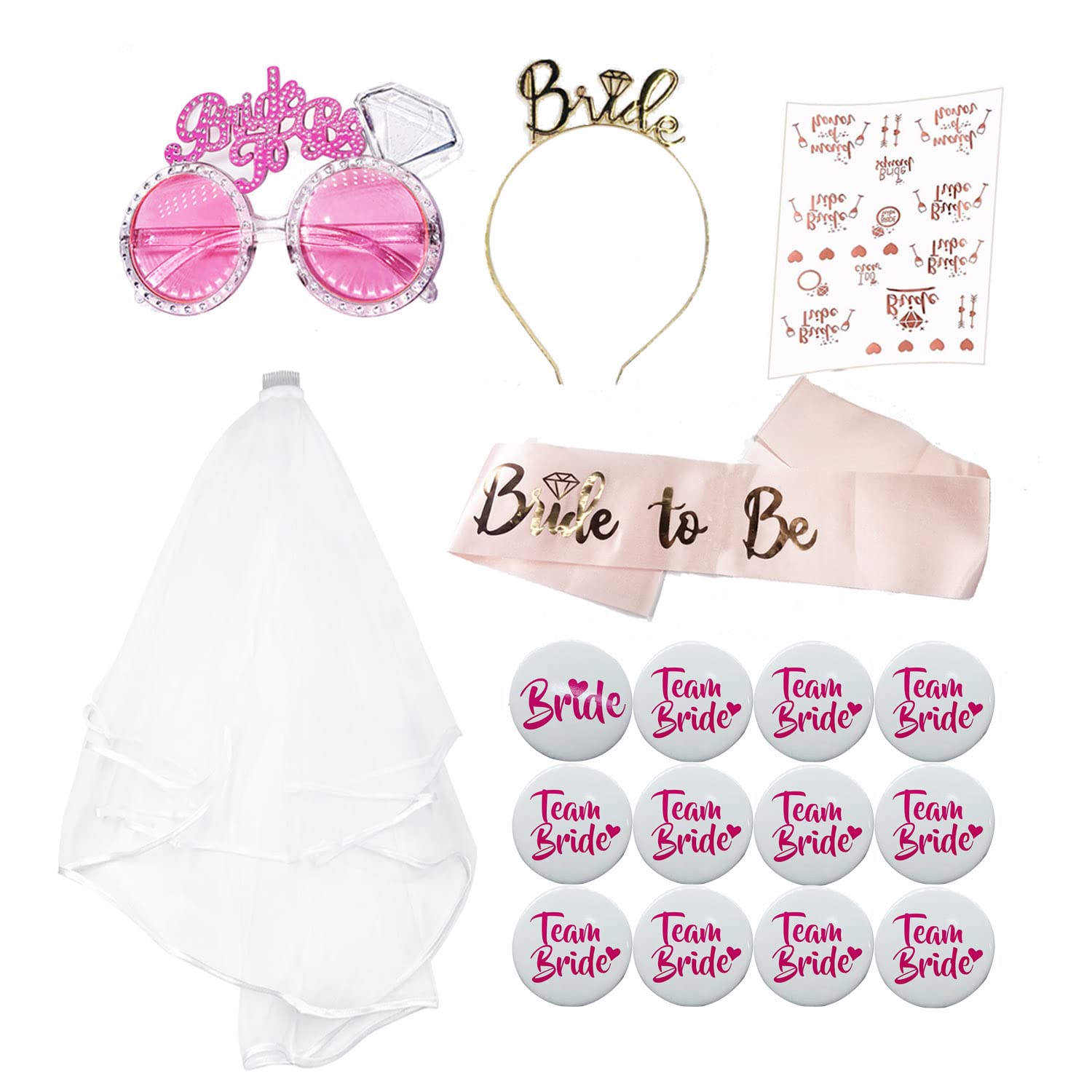Mach die Braut zum absoluten Star mit diesem wunderschönen Haarreif und Schleier Set von LUMOOM! Perfekt für den Junggesellinnenabschied, die Brautdusche oder romantische Hochzeitsfotos. Der elegante Haarreif mit 'Bride' Schriftzug und glitzernden Perlen setzt die zukünftige Braut gekonnt in Szene, während der transparente Schleier aus weichem Polyester für den richtigen Prinzessinnen-Look sorgt. Mit dem praktischen Kamm lässt sich der Schleier ganz einfach im Haar befestigen und sitzt sicher den ganzen Abend. Das Set ist nur 80g leicht und damit super bequem zu tragen - auch bei langen Feiern. Ob für eine spaßige Mottoparty, Karneval oder als besonderes Accessoire für die Verlobung: Mit diesem Set wird jede Braut zum Mittelpunkt der Aufmerksamkeit! Hübsch verpackt ist es auch das ideale Geschenk für die beste Freundin oder Schwester. Hol dir jetzt dieses zauberhafte Set und sorge für unvergessliche Momente und traumhafte Fotos!