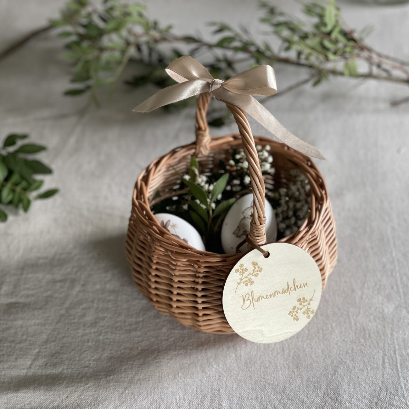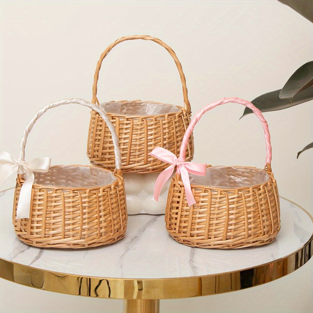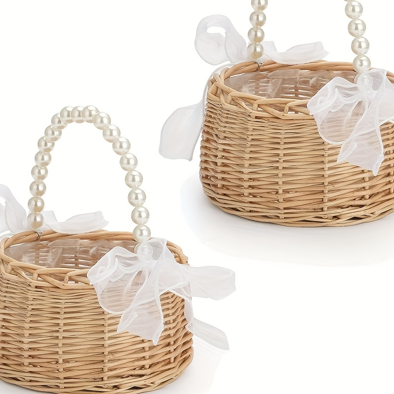 Blumenmädchen Körbe 2er Set Rattan - Mit Perlengriff Und Schleife Für Hochzeiten