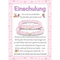Wie süß ist denn dieses Mutter-Tochter Armband Set! Perfekt zur Einschulung als besonderes Geschenk. Zwei passende Armbänder für Mama und Tochter plus ein liebevoller Schlüsselanhänger. Mit verstellbarer Länge von 32 cm - passt also beiden perfekt. Inklusive Einschulungs-Ernunterungskarte und mit süßem Herz-Design. Symbolisiert die enge Verbindung und gibt der Kleinen Sicherheit am ersten Schultag. 'Keine Angst, ich bin immer bei dir' - diese Botschaft trägt eure Tochter immer bei sich. Ideal für die Schultüte oder als separates Geschenk. Für Töchter, Nichten oder Enkelinnen - ein emotionales Geschenk, das in Erinnerung bleibt. Einfach anziehen und sich verbunden fühlen!