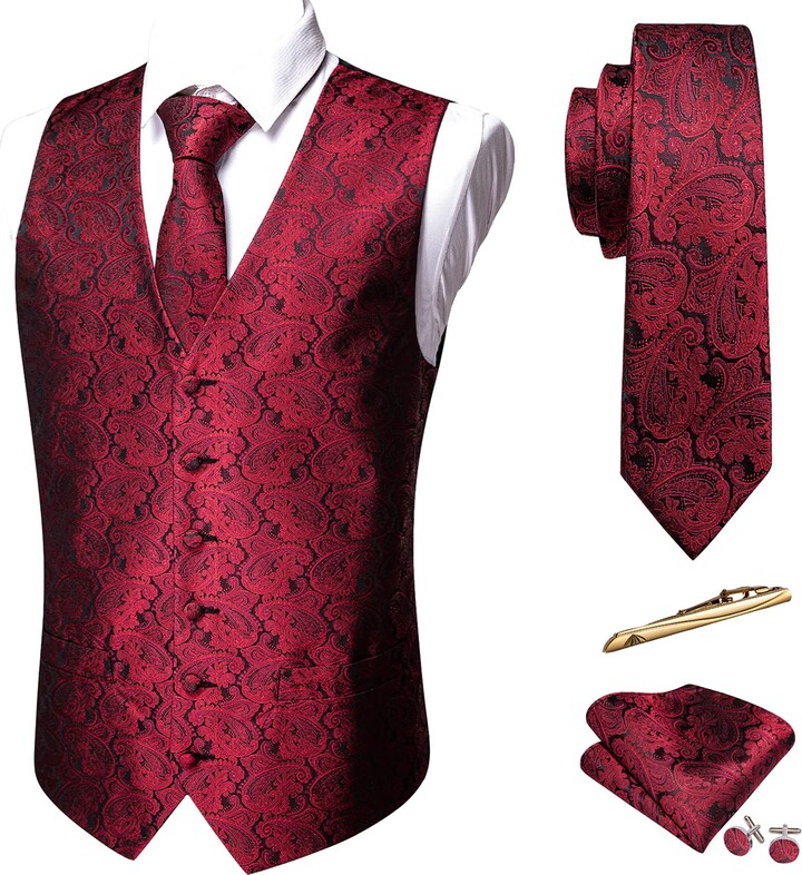 Frohe Weihnachten, modebewusste Herren! Dieses 5-teilige Set in Weihnachtsoptik bringt Festtagsstil auf die nächste Stufe. Enthalten: Weste, Krawatte, Einstecktuch, Manschettenknöpfe und Krawattenklammer.