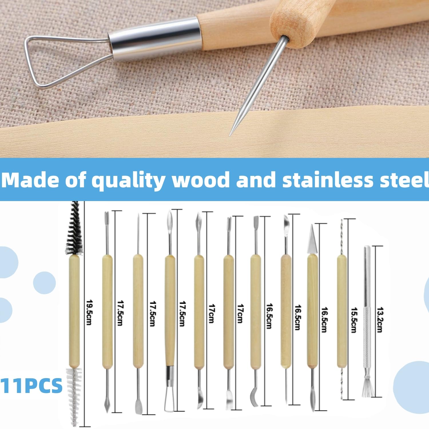 Kreativ sein war noch nie so einfach! Mit diesem umfangreichen 61-teiligen Modellierwerkzeug-Set hast du für jede künstlerische Herausforderung das passende Werkzeug zur Hand. Die rostfreien Stahlspitzen sind stabil und brechen nicht, während die Holzgriffe angenehm in der Hand liegen. Egal ob du mit Ton, Keramik, lufttrocknendem Clay oder Polymer Clay arbeitest - hier findest du Werkzeuge zum Formen, Schnitzen, Glätten, Texturieren und Schneiden. Perfekt für detailreiche Arbeiten an Skulpturen, Miniaturen oder Reliefs. Die praktische Aufbewahrungstasche hält alles ordentlich zusammen und ist ideal für unterwegs oder zur platzsparenden Lagerung. Super für Anfänger, die in die Welt des Modellierens einsteigen wollen, aber auch für professionelle Künstler, die ihr Werkzeug-Sortiment erweitern möchten. Ein tolles Geschenk für kreative Köpfe jeden Alters! Hol dir deine Inspiration und lass deiner Fantasie freien Lauf - mit den richtigen Werkzeugen wird jedes Kunstprojekt zum Erfolg.