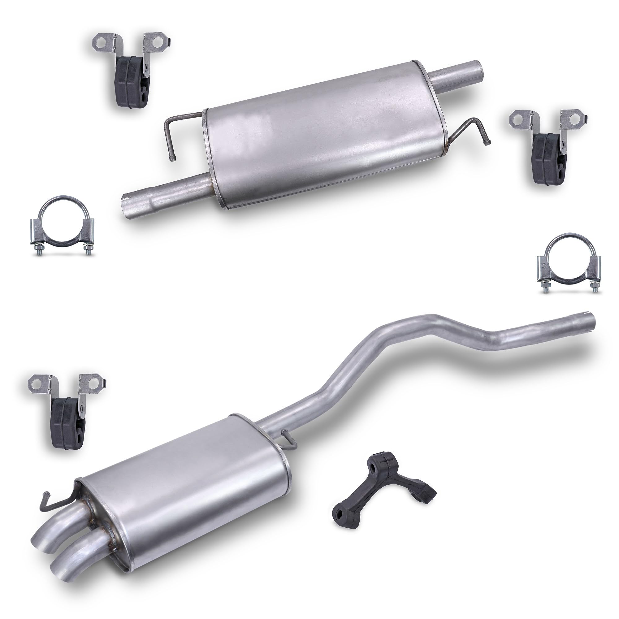 Passend für deinen VW T5! Dieses komplette Auspuff-Set bringt deinen Transporter oder Multivan wieder auf Vordermann. Enthalten sind sowohl der Mittelschalldämpfer als auch der Endschalldämpfer - plus das ganze Montagematerial, was du brauchst. Mit 890mm Länge und 7,74kg Gewicht passt es perfekt für die Modelle T5 Multivan (7HM, 7HN, 7HF, 7EF, 7EM, 7EN), T5 Bus (7HB, 7HJ, 7EB, 7EJ) und T5 Kasten (7HA, 7HH, 7EA, 7EH). Einfach einbauen und schon läuft dein VW wieder wie neu! Die Qualität stimmt und die Passgenauigkeit ist top. Perfekt als Ersatz für verschlissene Auspuffanlagen oder nach einem Schaden. Mit dabei sind 4 Anschlagpuffer und 2 Bügelschellen mit 60mm Durchmesser - alles was du für den Einbau benötigst. Wichtig: Bitte vorher unbedingt prüfen, ob das Teil zu deinem speziellen Fahrzeugmodell passt! Einfacher geht's nicht, um deinen T5 wieder flüsterleise über die Straße gleiten zu lassen.