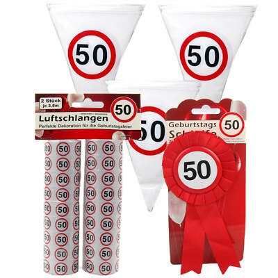Was alles dabei ist: • 1x Happy Birthday Banner • 5x Luftschlangen-Spiralen • 6x Verkehrsschilder zum 40. • Alles in schwarz, weiß, rot