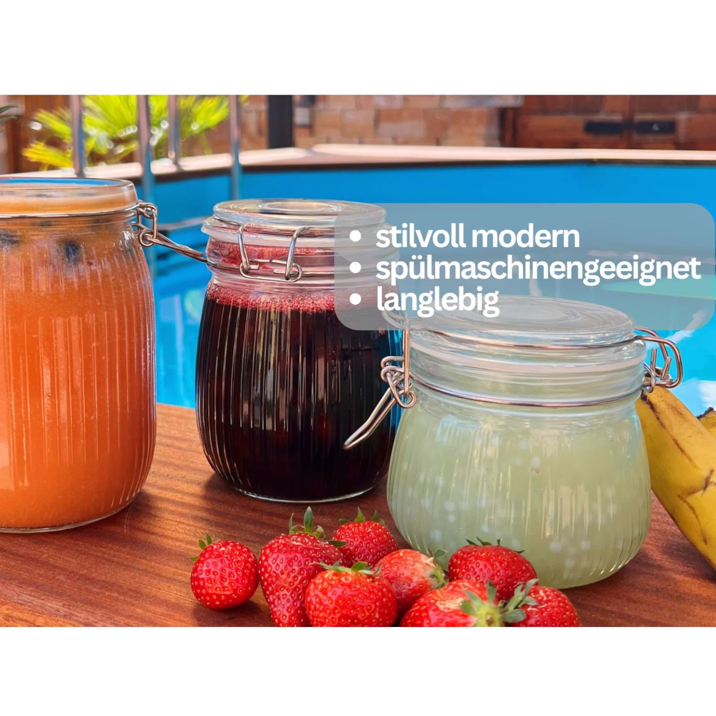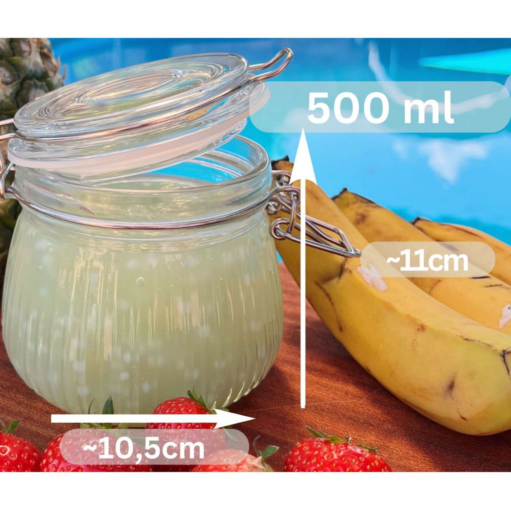 Das coole am Bügelverschluss: Einfach den Drahtbügel runterklappen und das Glas ist luftdicht verschlossen! So bleiben Aromen erhalten und nichts trocknet aus. Perfekt zum Einkochen, Einwecken oder einfach nur zur Aufbewahrung.