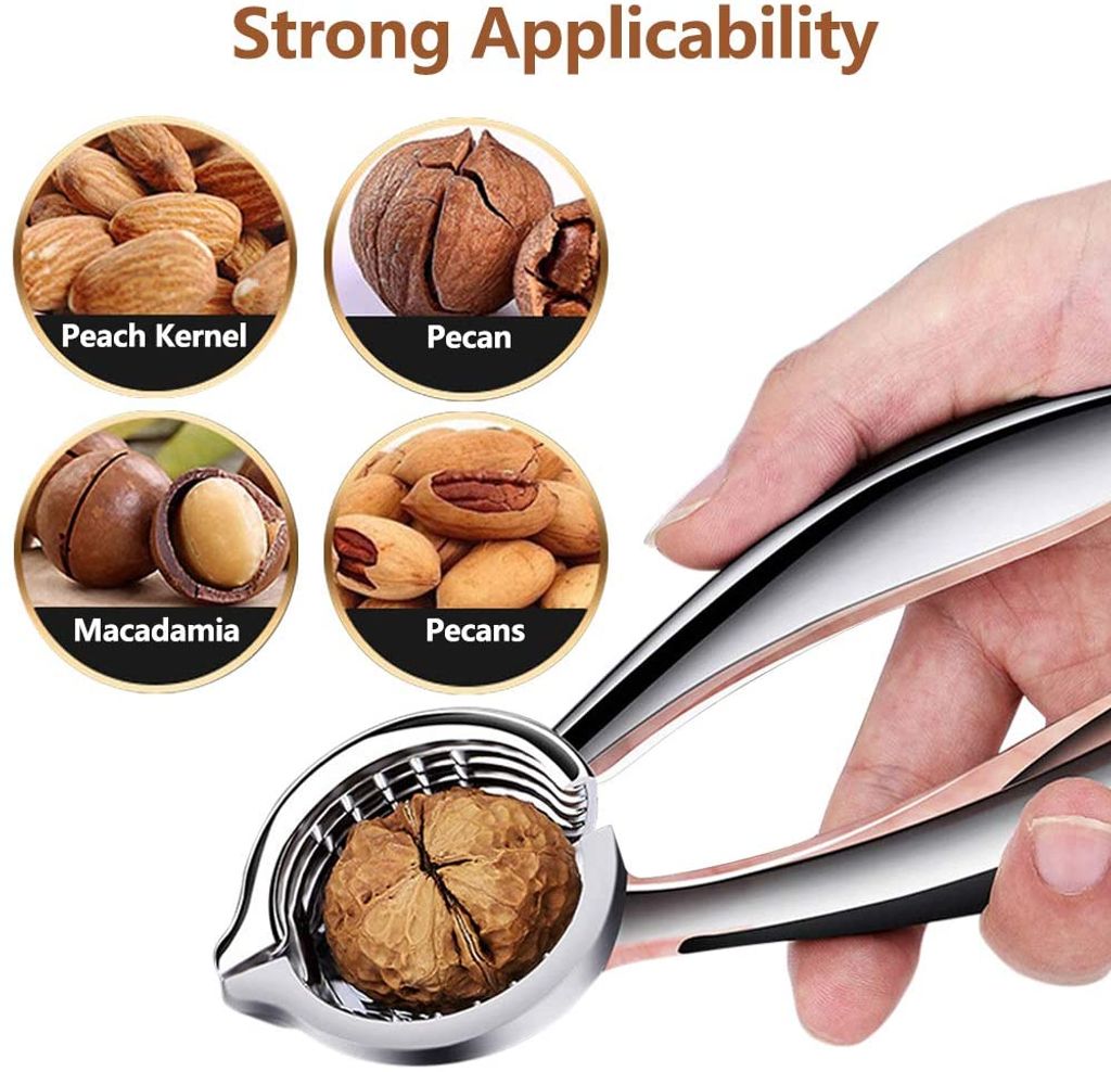Nussknacken war noch nie so einfach! Dieses 2er-Set Nussknacker von ZHIYUQL macht das Öffnen von Walnüssen zum Kinderspiel. Aus verstärktem Aluminium gefertigt, sind die Knacker rost- und korrosionsbeständig - sie halten ewig! Die komfortablen Holzgriffe liegen perfekt in der Hand und werden auch bei kaltem Wetter nicht unangenehm kühl. Die spezielle Ausrichtung sorgt dafür, dass die Nusskerne nicht zerquetscht werden - du bekommst sie immer ganz und heil aus der Schale. Die federbelastete Konstruktion erfordert kaum Kraftaufwand. Aber das ist noch nicht alles: Jeder Nussknacker kann auch als Champagner-Korkenzieher verwendet werden! Einfach ansetzen, drehen und schon springt der Korken elegant heraus. Ein vielseitiges Küchenutensil, das in keiner Haushaltsausstattung fehlen sollte. Perfekt für die Weihnachtsbäckerei, gemütliche Abende oder Feierlichkeiten. Qualität, die man sieht und spürt!
