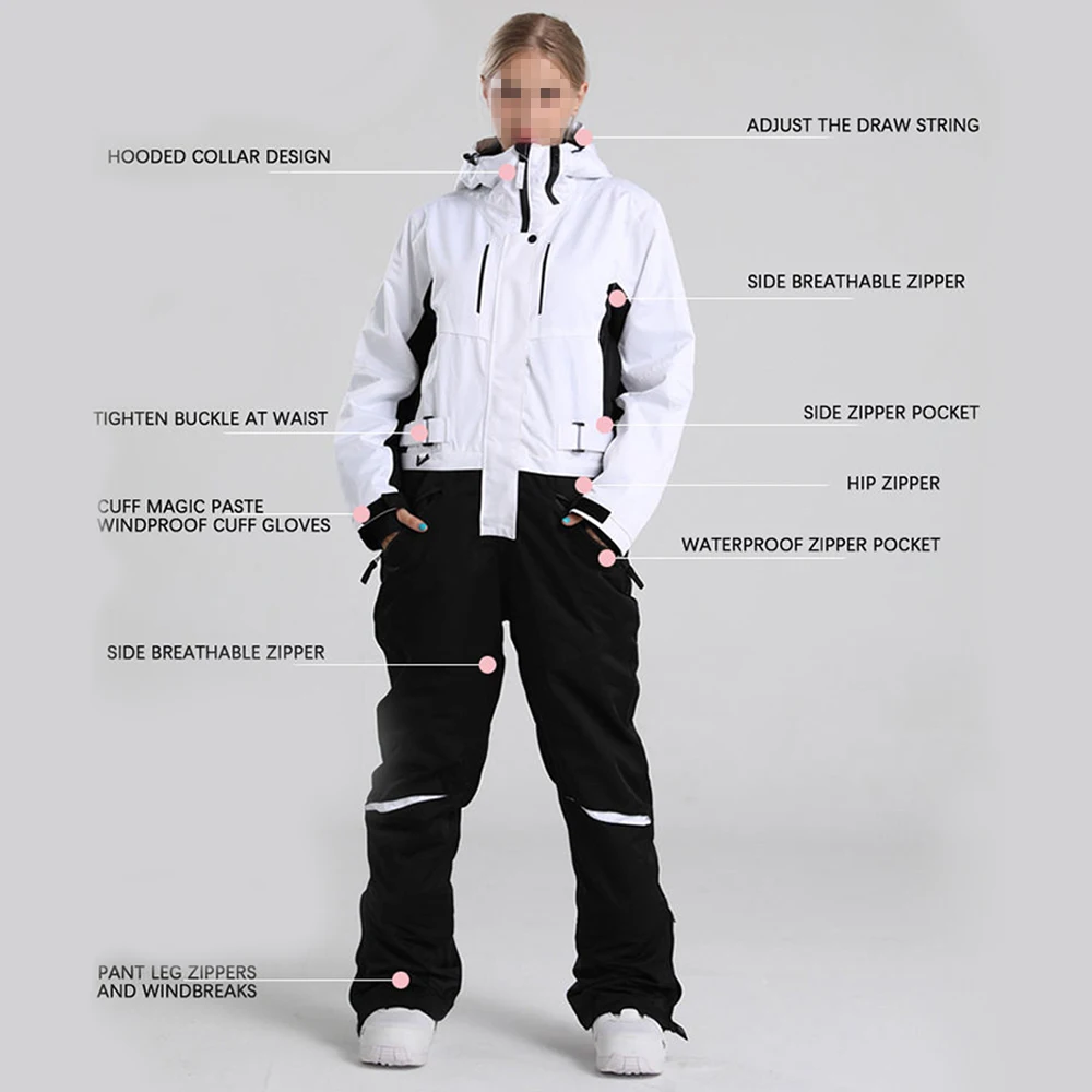 Mädels, dieser Skianzug ist ja mal der absolute Hammer für den Winter! Das zweiteilige Set besteht aus einer Jacke und Hose, die beide super warm halten und komplett winddicht sind. Perfekt also für Skifahren, Snowboarden oder einfach nur für winterliche Spaziergänge. Das Thermo-Gewebe sorgt für außergewöhnliche Wärme selbst bei eisigen Temperaturen. Besonders praktisch: Die Kapuze ist abnehmbar und die Ärmel verstellbar - so kannst du den Anzug genau an deine Bedürfnisse anpassen. Der elastische Bund und die verstellbare Passform machen den ganztägigen Tragekomfort perfekt. Egal ob du auf der Piste unterwegs bist, beim Winterwandern oder beim Klettern - dieser Anzug hält dich trocken und warm. Das moderne Design sieht nicht nur stylisch aus, sondern ist auch super funktionell. Die atmungsaktiven Materialien sorgen dafür, dass du nicht schwitzt, auch wenn du dich anstrengst. Einfach anziehen und los geht's in den Winterurlaub oder zum Wochenendausflug in die Berge. Macht wirklich eine gute Figur und ist dabei so praktisch! Perfekt für alle, die auch bei kaltem Wetter nicht auf Outdoor-Aktivitäten verzichten wollen.