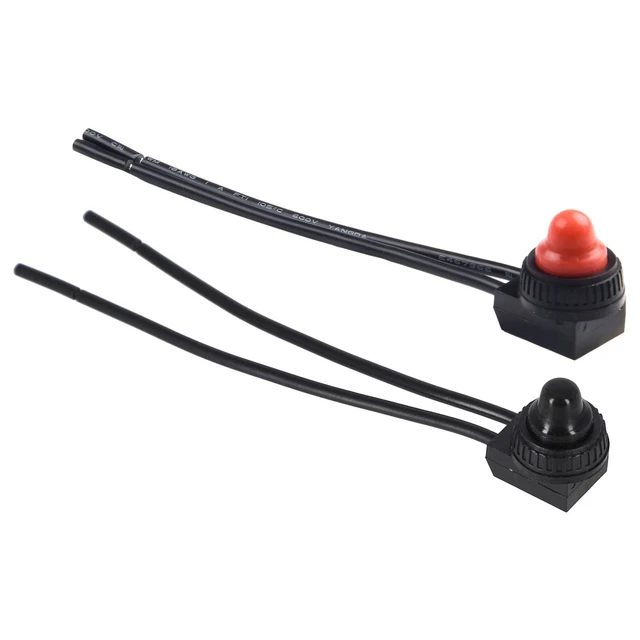 Dieses 6er Set mit 12V Druckknopfschaltern ist genau das Richtige für deine Elektro-Projekte! Jeder Schalter hat einen schwarzen Gummistiefel der wasserdicht ist - perfekt für Auto, Motorrad, ATV oder Boot. Mit 6A Betriebsstrom und 250V Spannung sind sie stark genug für die meisten 12V Anwendungen. Einfach Drücken - AN, nochmal Drücken - AUS! Die rechteckige Basis ist 17x14 mm groß und die Kabel sind 4,5 Zoll (ca. 11,5 cm) lang. Super für LED-Beleuchtung, Zubehör oder als Ersatz für defekte Schalter. Die Montage ist super einfach und die Schalter halten auch mal was aus. Damit kannst du dein Fahrzeug individualisieren oder reparieren ohne teure Werkstattkosten. Ein Set mit 6 Stück bedeutet: Du hast immer Ersatz oder kannst mehrere Schaltungen realisieren!