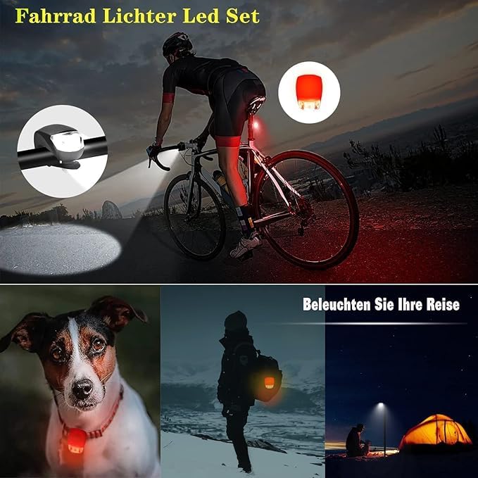 Moin! Dieses LED-Licht-Set ist der perfekte Begleiter für alle, die auch bei Dunkelheit unterwegs sind. Im Set sind gleich 6 Lichter dabei: 2 schwarze, 2 weiße und 2 rote - also für jeden Bedarf was dabei!\n\nDie Dinger sind komplett wasserdicht, das heißt Regen, Spritzwasser oder Feuchtigkeit machen ihnen nichts aus. Perfekt also fürs Fahrrad, den Kinderwagen, Rucksack oder was auch immer du beleuchten willst.\n\nJedes Licht hat zwei Knopfbatterien dabei (Isolierstreifen vor dem ersten Gebrauch nicht vergessen!). Die halten echt lange - viel länger als bei normalen LEDs. Und wenn sie mal leer sind, kannst du sie einfach austauschen.\n\nMontage ist super easy: Einfach das elastische Band um den gewünschten Gegenstand wickeln, festziehen und fertig! Kein Werkzeug nötig, geht in Sekunden. Und genau so schnell machst du sie auch wieder ab.\n\nDie verschiedenen Farben haben natürlich ihren Sinn: Weiß für vorne, Rot für hinten - so bist du im Straßenverkehr optimal sichtbar. Schwarz und die anderen Farben für coole Akzente.\n\nEinsatzmöglichkeiten gibt's wie Sand am Meer: Fahrrad fahren, Joggen, Wandern, Camping, Hundegassi... Einfach überall, wo du Licht brauchst. Und mit dem Knopfdruck wechselst du zwischen den Lichtmodi.\n\nAlso wenn du sicherheitsbewusst bist und nicht im Dunkeln tappen willst - dieses Set ist genau das Richtige. 6 Lichter für den Preis von... naja, schau selbst, aber es lohnt sich auf jeden Fall!