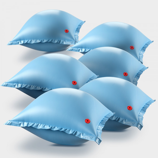 Achtung Poolbesitzer! Diese Luftkissen retten deine Winterabdeckung. 6 Stück, je 1,20x1,20m (aufgeblasen 93x93cm). Einfach unter die Plane legen - verhindert, dass sich Wasser und Schnee in der Mitte sammeln. Die Plane reißt nicht ein! UV- und chlorbeständig, super reißfest. Mit Ösen zum Verbinden. Inklusive Elektropumpe (230V/110W) mit 3 Aufsätzen. Macht die Pool-Überwinterung sicher und einfach - deine Abdeckung dankt's dir!