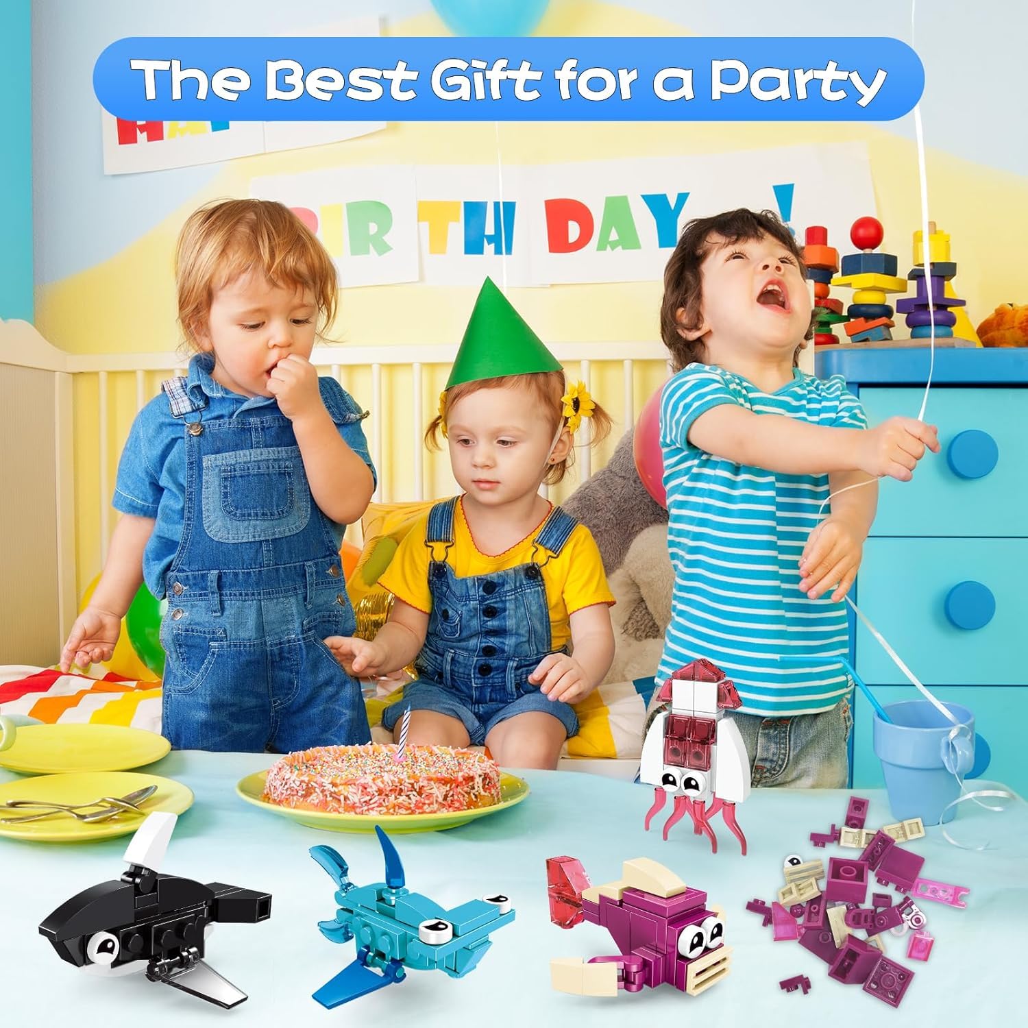 Perfekte Mitgebsel für die nächste Kinderparty! Dieses Set enthält 12 verschiedene Tier-Bausteine in einzelnen Verpackungen - ideal als Gastgeschenk. Enthalten sind: Clownfisch, Krake, Laternenfisch, Krabbe, Krebs, Mantarochen, Hai, Butterfisch, Rosa Delfin, Meeresschildkröte, Schwertfisch und Orca. Hergestellt aus hochwertigem, ungiftigem ABS-Material mit glatten Kanten. Fördert spielerisch die motorischen Fähigkeiten, räumliches Denken und Kreativität. Perfekt für Kinder von 4-12 Jahren. Auch super als Klassenpreis, für Goodie-Bags oder als kleines Geschenk zu Weihnachten und Ostern. Mach die nächste Geburtstagsfeier deines Kindes zu einem unvergesslichen Erlebnis!