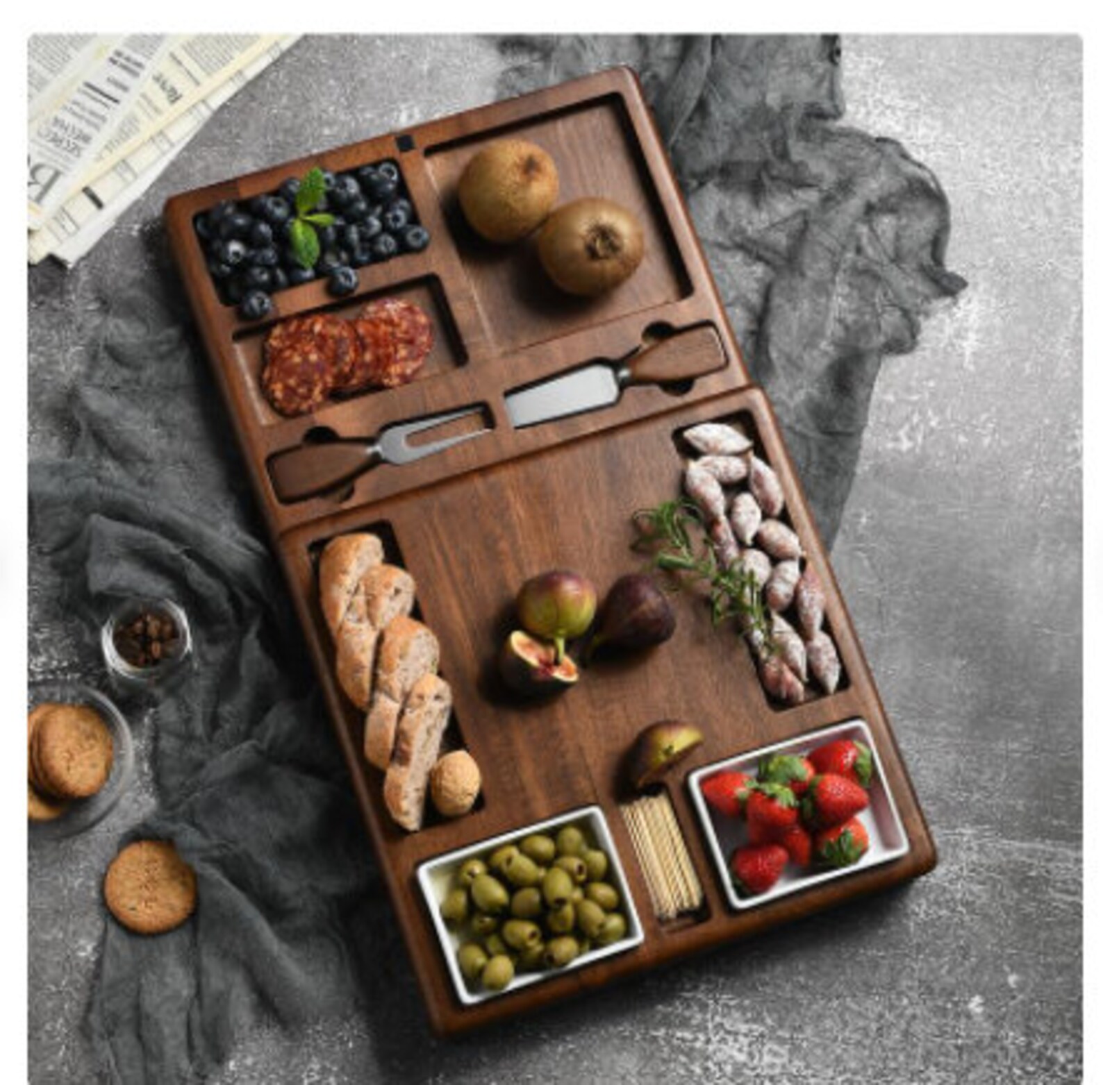 Stylish servieren war noch nie so einfach! Dieses Shimmerz Charcuterie Board aus Holz (38,1 x 27,94 cm) hat 6 Fächer für Käse, Aufschnitt, Nüsse und mehr. Mit transparentem Deckel - schützt vor Staub und Insekten, hält Speisen frisch. Das natürliche Holz-Design ist ein Hingucker auf jedem Buffet. Perfekt für Partys, Picknicks, Weihnachten oder als Geschenk. Einfach zu reinigen und wiederverwendbar. Mach deine nächste Feier zu einem kulinarischen Erlebnis!