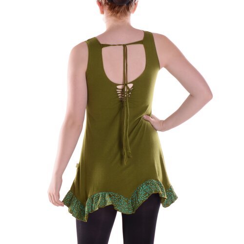 Wenn du Individualität liebst und Massenware langweilig findest, ist dieses VISHES Shirt genau dein Ding! Jedes Stück ist ein handgefertigtes Unikat aus Nepal - mit kleinen Unregelmäßigkeiten, die den Charakter unterstreichen. Aus handgewebter Baumwolle gefertigt, fühlt sich das Material super angenehm auf der Haut an. Der spezielle Lagenlook besteht aus zwei Lagen, die an verschiedenen Punkten miteinander verbunden sind - das gibt nicht nur optisch was her, sondern sorgt auch für interessante Bewegung beim Tragen. Achtung: Der Artikel fällt etwa eine Nummer kleiner aus, also nimm lieber eine Größe größer als gewohnt! Ohne Ärmel ist die Tunika perfekt für Frühling und Sommer - luftig, bequem und total vielseitig kombinierbar. Durch die Cutwork-Techniken, Holzperlen und Kokosknöpfe bekommt jedes Shirt seine eigene Persönlichkeit. Die Stoffe stammen direkt aus Nepal und unterstützen die lokale Wirtschaft. Ob du es jetzt zu Jeans, Leggings oder einem Rock trägst - dieses Shirt setzt Akzente und zeigt, dass du Stil hast. Nicht nur Kleidung, sondern ein Statement!