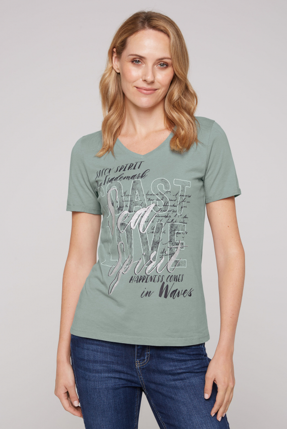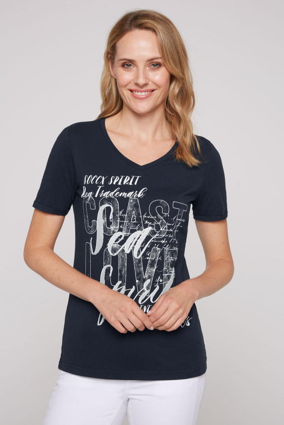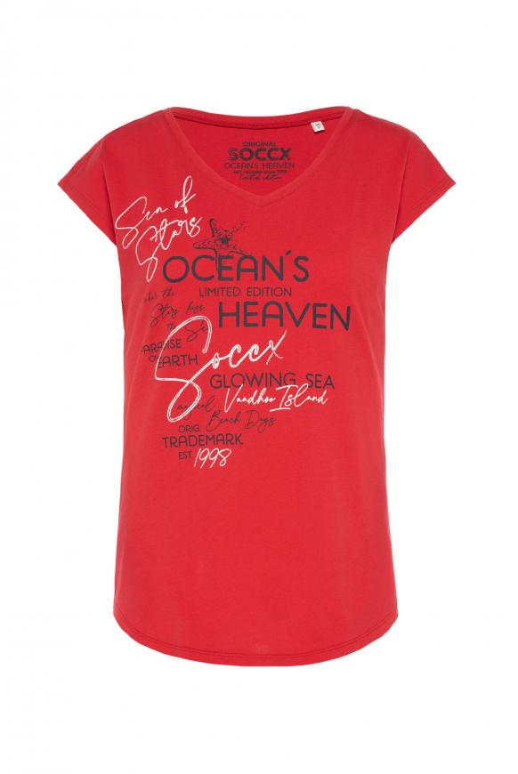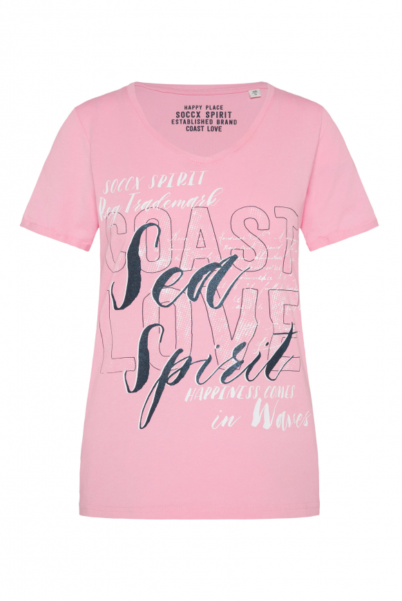 Auf der Suche nach nem stylischen Top für den Herbst? Dieses ärmellose Shirt von SOCCX in wunderschönem Türkis (Ocean Flash) ist genau dein Ding! Mit nem schmeichelhaften V-Ausschnitt und Rippblende sitzt es einfach perfekt. Die überschnittenen Schultern und der abgerundete Saum geben dem Top nen modernen Look. Das besondere Highlight sind die Glitter-Prints auf der Vorderseite - die machen echt was her! Aus nem bequemen Material mit Flammgarnstruktur gefertigt, trägt es sich angenehm auf der Haut. Der lockere Schnitt ist super alltagstauglich und vielseitig kombinierbar - ob solo an wärmeren Tagen oder unter ner Jacke oder nem Cardigan wenn's kühler wird. Perfekt für Office, Freizeit oder nen Abend mit Freunden. Das SOCCX Damen Shirt ist hochwertig verarbeitet und wird schnell zu deinem neuen Lieblingsstück. Einfach anziehen und du fühlst dich wohl und siehst trotzdem stylisch aus. Hol dir jetzt dieses modische Must-Have und upgrade deine Herbstgarderobe! Farben und Schnitt passen einfach zu allem.