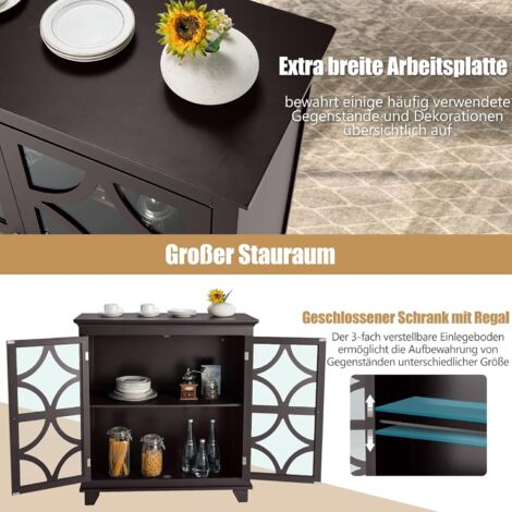 Küchenschrank Sideboard 180cm Mit LED - Buffetschrank Mit Steckdose & Arbeitsplatte