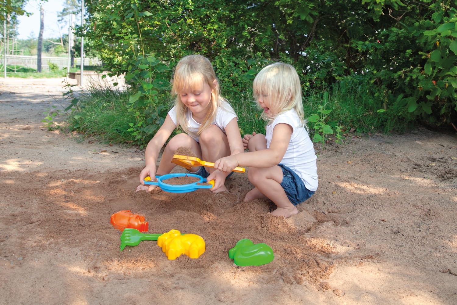 Das LENA Sandspielset ist der perfekte Begleiter für kleine Sandkasten-Architekten! Mit 8 Teilen - inklusive Sieb, Schaufel, Rechen und 5 bunten Förmchen - gibt's hier jede Menge Spielspaß. Die fröhlich-bunte Farbgebung macht extra Laune und die kindgerechten Formen sind ideal für kleine Hände ab 12 Monaten. Besonders gut: Das Set ist TÜV-zertifiziert und made in Europe - also garantiert sicher und nachhaltig. Verpackt im praktischen Netz mit Hangtag, super für unterwegs oder als Geschenk. Die robusten Materialien halten auch mal einen Wurf aus und die Stücke sind schön groß, damit nichts verschluckt werden kann. Ob im Sandkasten, am Strand oder im Garten - hier können Kinder nach Herzenslust buddeln, sieben, formen und matschen. Ein klassisches Spielzeug, das garantiert nicht langweilig wird und die motorischen Fähigkeiten fördert. Einfach auspacken und losspielen!