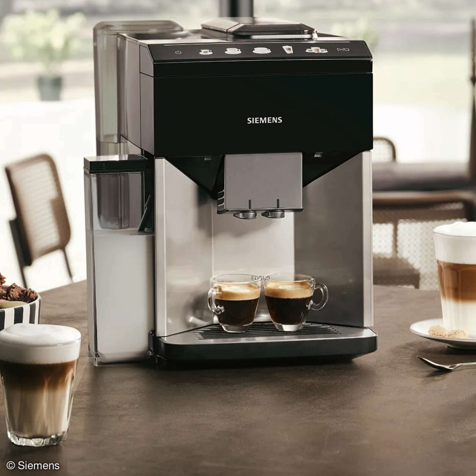 Kaffeeliebhaber aufgepasst! Der Siemens EQ.500 ist ein Traum! Mit Home Connect - steuerst du ihn per App oder Alexa. Keramik-Mahlwerk - mahlt die Bohnen super fein und leise. iAroma System - perfekte Brühtemperatur (90-95°C) für volles Aroma. Cappucinatore - macht cremigen Milchschaum, reinigt sich selbst! TFT Farbdisplay - einfache Bedienung mit einem Klick. OneTouch DoubleCup - zwei Kaffees gleichzeitig! 1500 Watt - heizt super schnell auf. In edlem Grau - sieht total modern aus. Siemens Qualität - da weißt du was du kriegst! Einfach Bohnen rein und Kaffeegenuss pur erleben!