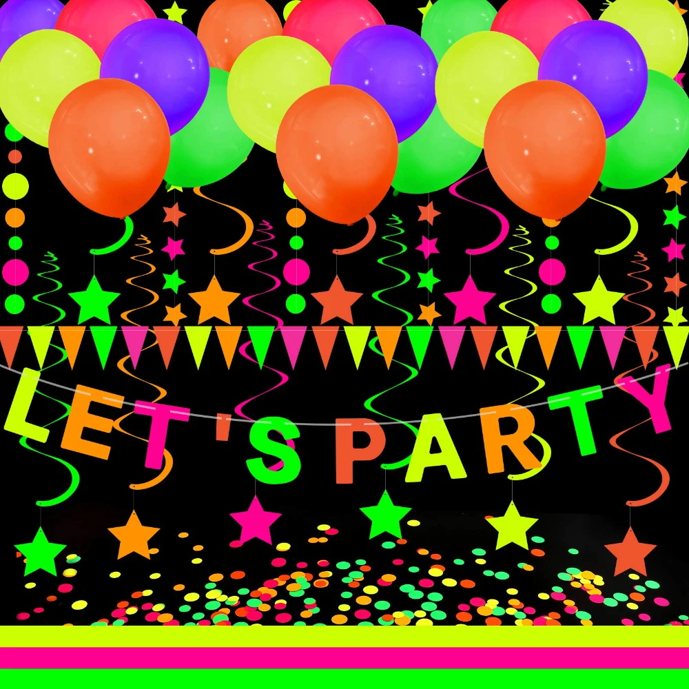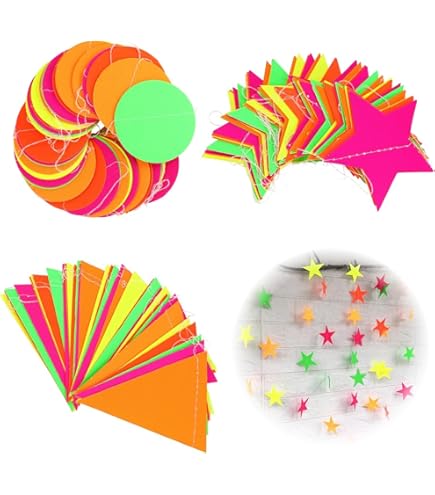 Boah, diese Neon-Girlande bringt jede Party zum Leuchten! Unter Schwarzlicht entfaltet sie ihre volle Wirkung und leuchtet in knalligen Farben. Mit 4,4 Meter Länge kannst du damit ganze Räume schmücken - an Wänden, Decken oder Tischen. Aus qualitativem Neon-Papier, langlebig und wiederverwendbar. Schon vormontiert - einfach entfalten und aufhängen! Perfekt für Geburtstage, Hochzeiten, Weihnachten oder jede andere Feier. Ob Punkte-Muster oder andere Designs - deine Gäste werden begeistert sein! Einfach die UV-Lichter an und die Party kann starten!