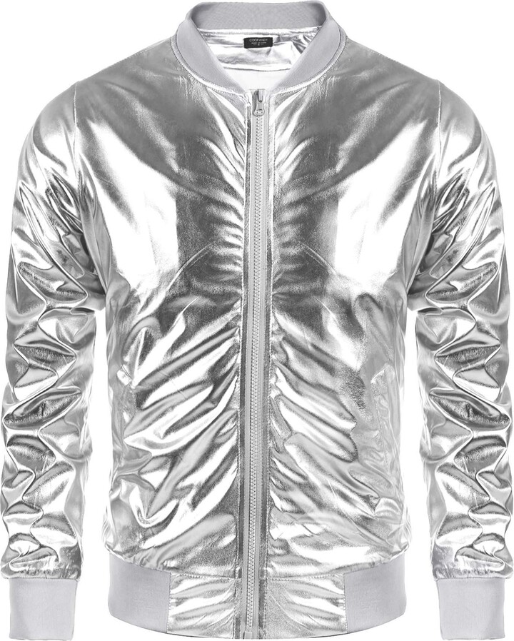 • Silber Metallic Bomberjacke Damen - Pailletten Jacke Für Disco Und Karneval