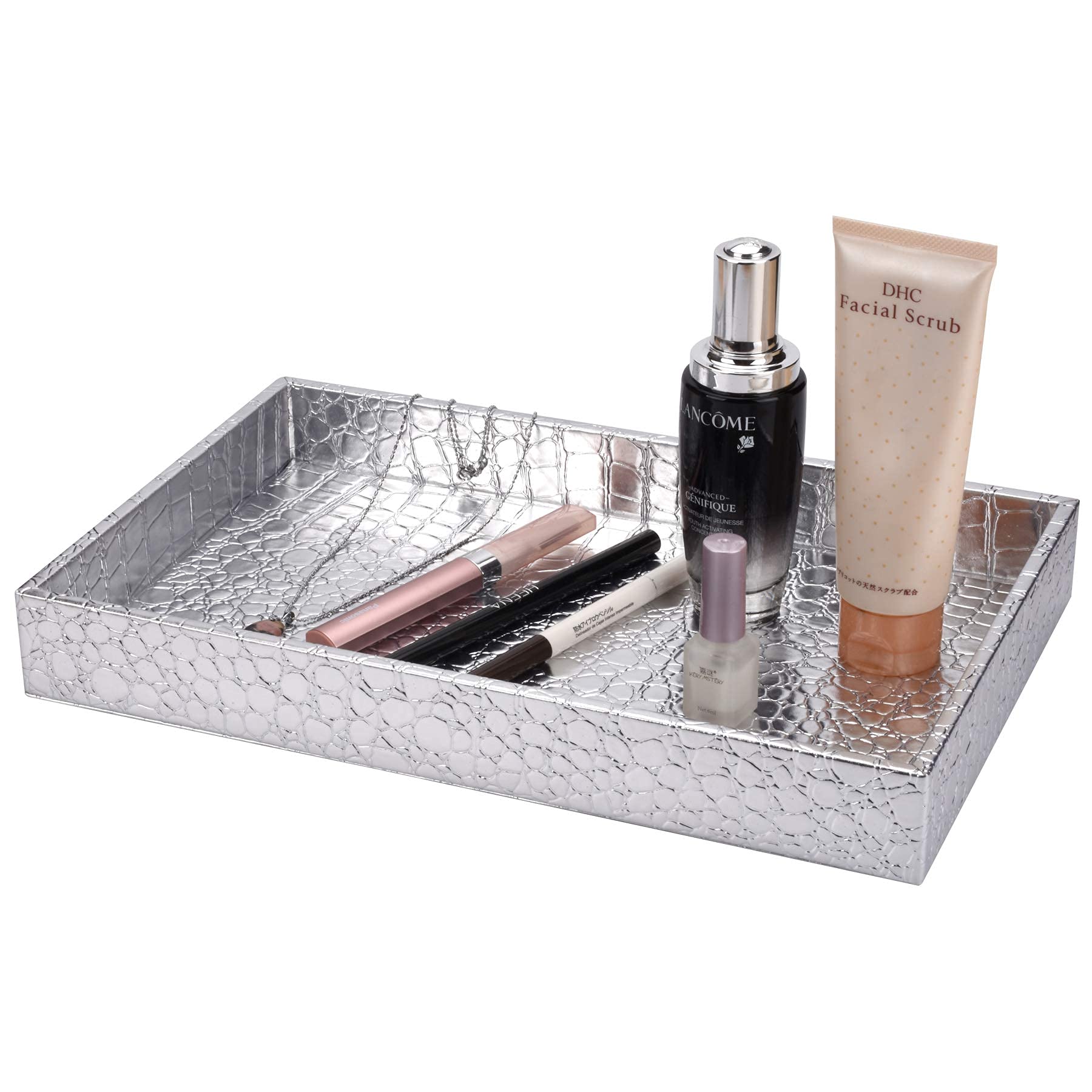 Ordnung und Stil für deinen Schminktisch! Dieses mondförmige Tablett in Silber ist nicht nur super praktisch, sondern sieht auch noch total elegant aus. Mit integriertem Spiegel kannst du direkt checken, wie du aussiehst, während du deine Lieblingsstücke griffbereit hast. Aus stabilem Zink gefertigt, trägt es problemlos Parfümflakons, Schmuck, Lippenstifte und andere Kleinigkeiten. So hast du alles ordentlich an einem Platz und musst nicht ewig suchen. Perfekt für den Schminktisch, das Badezimmer oder den Nachttisch. Ob als Geschenk zur Einweihung, zu Weihnachten oder einfach für dich selbst - dieses Tablett macht jeden Bereich sofort aufgeräumter und stylischer. Praktisch, schön und total vielseitig!