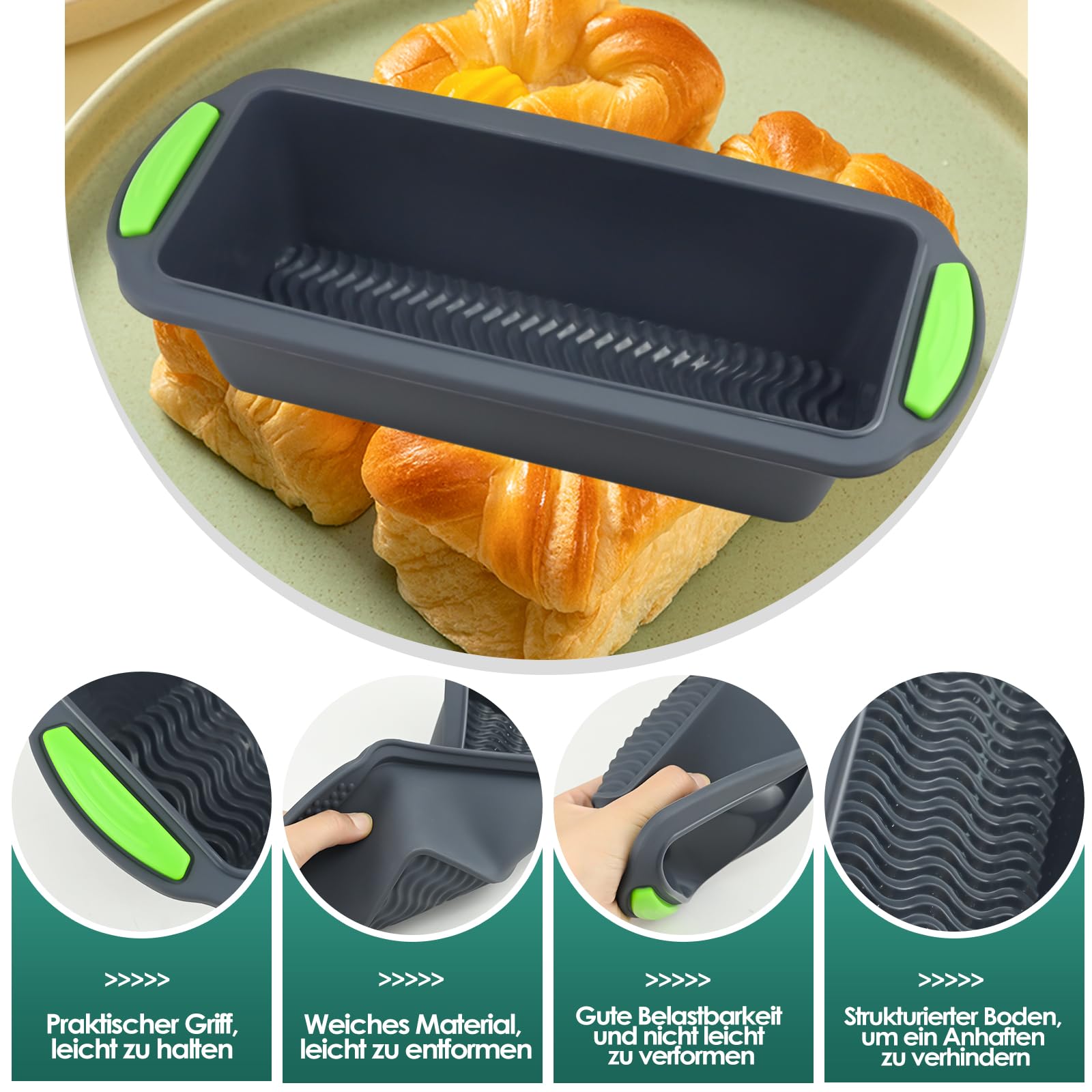 Brot-Bäcker, diese Silikonform ist ein Traum! 28x12.5x6cm groß, in dunkelgrau - sieht super edel aus. 100% BPA-frei und lebensmittelecht - absolut sicher. Hitzebeständig bis 230°C, frostsicher bis -40°C - also für Ofen, Mikrowelle und Gefrierfach geeignet. Perfekte Antihaft-Oberfläche - dein Brot löst sich einfach und rückstandslos. Im Set: Backform, Teigschaber und Silikonpinsel - alles dabei! Rutschfeste Textur und verstärkte Ränder für stabilen Stand. Perfekt für Brote, Kuchen, Baguettes - was auch immer du backen willst. Einfach zu reinigen, spülmaschinengeeignet. Macht jedes Backwerk zum Erfolg!