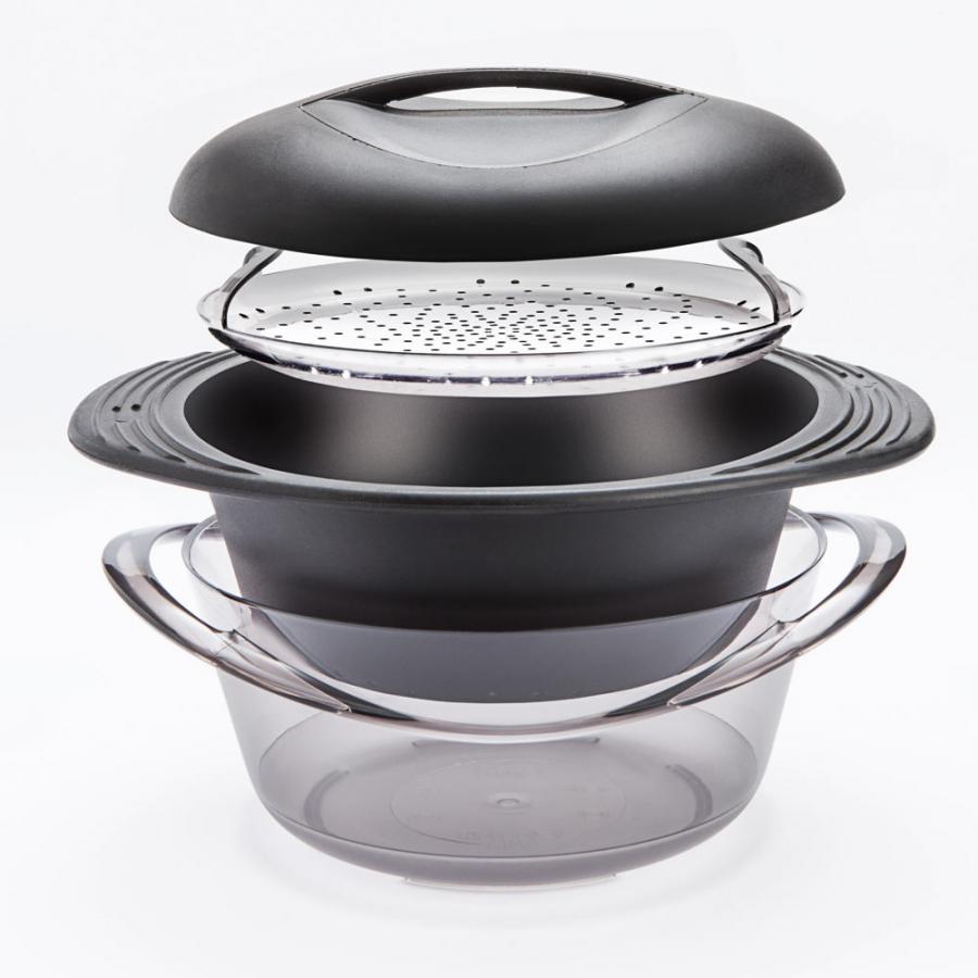 Gesundes Dampfgaren war noch nie so einfach! Dieser praktische Silikon-Dampfgarer passt in jede Mikrowelle oder Backofen und ermöglicht fettarmes Kochen. Das Besondere: Er lässt sich nach Gebrauch komplett flach zusammenfalten und nimmt kaum Platz in der Schublade weg. Mit 1200ml Fassungsvermögen ist er groß genug für komplette Mahlzeiten mit Reis, Gemüse, Fisch oder Fleisch. Der Deckel verhindert das Verspritzen und hält Ofen sowie Mikrowelle sauber. Aus hochwertigem, geschmacksneutralem Silikon gefertigt, das Temperaturen von -40°C bis +230°C standhält. Perfekt auch zum Einfrieren von Lebensmitteln! Einfache Reinigung in der Spülmaschine - ohne Verformungen. Ideal für Berufstätige, die ihr Mittagessen schnell in der Büro-Mikrowelle zubereiten möchten. Der integrierte Griff macht das Handling auch bei Hitze sicher. Übrigens: Die abgerundete Form ermöglicht einfaches Wenden in der Mikrowelle für gleichmäßiges Garen. Deutsche Firma mit 24/7 Support - bei Problemen einfach melden!