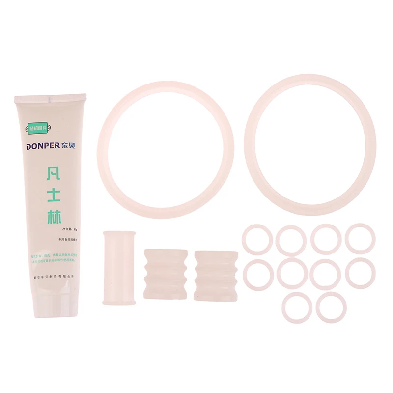 Wenn deine Softeis-Maschine undicht wird, sind diese Silikon-Dichtringe die Lösung! Im Set mit 2 Stück, jeweils 32mm Durchmesser und 45mm hoch. Aus flexiblem, lebensmittelechtem Silikon gefertigt, das sich perfekt anpasst und zuverlässig abdichtet. Einfach zu montieren - einfach den alten Ring entfernen, neuen einsetzen und schon läuft deine Eismaschine wieder wie neu. Perfekt für die Wartung und Reparatur von Softeis-Automaten. Die weiße Farbe passt zu den meisten Geräten. Einfache Reinigung und regelmäßige Kontrolle verlängern die Lebensdauer deiner Maschine. Immer praktisch, Ersatzteile auf Vorrat zu haben!